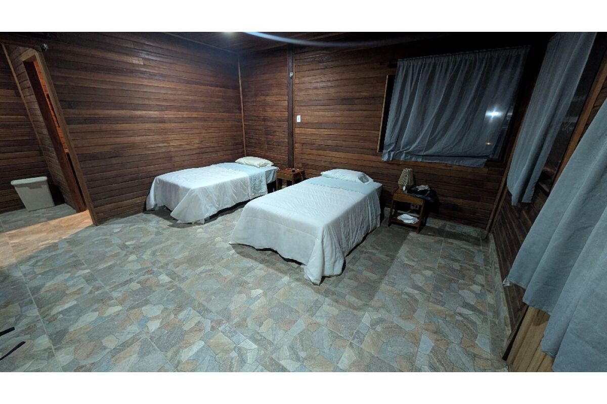 Experience the authentic charm of the Bolivian jungle at our rustic yet comfortable lodge. Four private, air-conditioned chalets with twin beds and en-suite bathrooms provide a cozy retreat after a day on the water. Gather in the communal area with fellow adventurers to share stories, enjoy a drink, and soak up the atmosphere. Our in-house chef prepares fresh, delicious meals each day — fueling your next adventure and creating memories that last a lifetime.