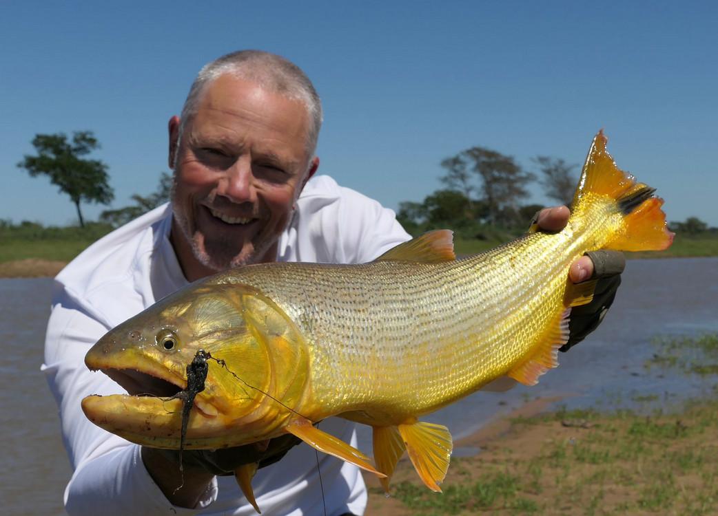 The “River Tiger,” (Salminus maxillosus) as the Golden Dorado is also often referred to, is one of the most prized fresh water sport fish in the world. This aggressive and powerful migratory gamefish is constantly on the lookout for schools of baitfish to attack and this makes them susceptible to both spin and fly fishermen. The aggressive nature of this elusive fish, its spectacular jumping skills, fantastic strength and stamina makes it the ultimate freshwater gamefish. When lure or fly fishing, once hooked, they will strip your line off the reel like an express train, and therefore good quality tackle is needed.