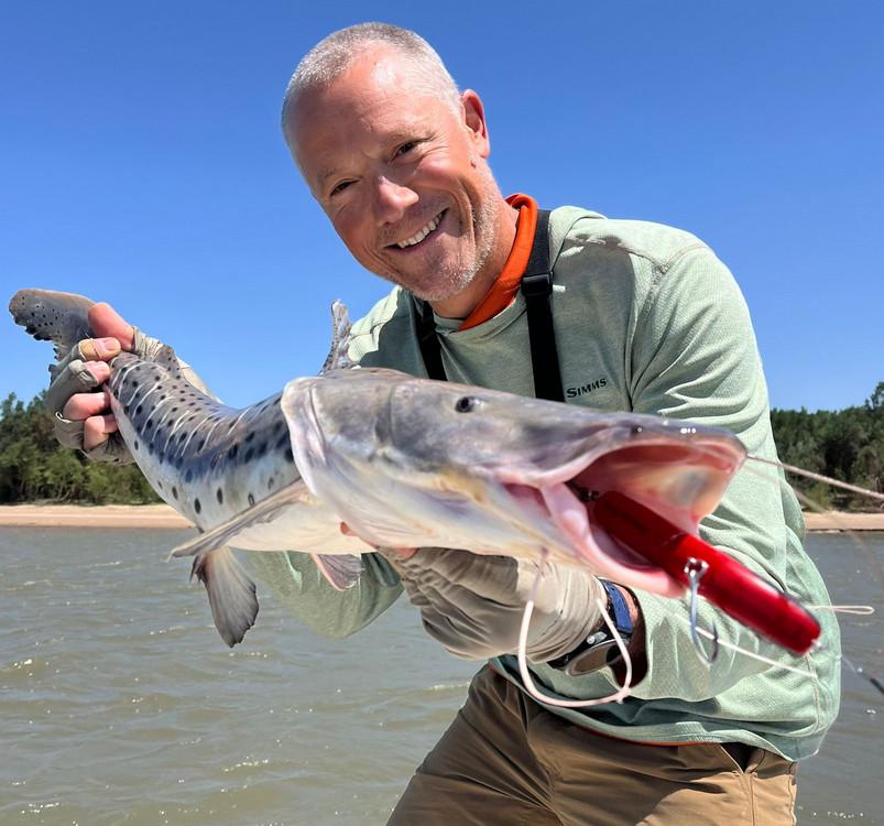 Big Surubi can also be caught on flies and deeper lures and will fight like nothing you have experienced before. Be prepared at any minute for a fish to strike and charge away like a rocket.