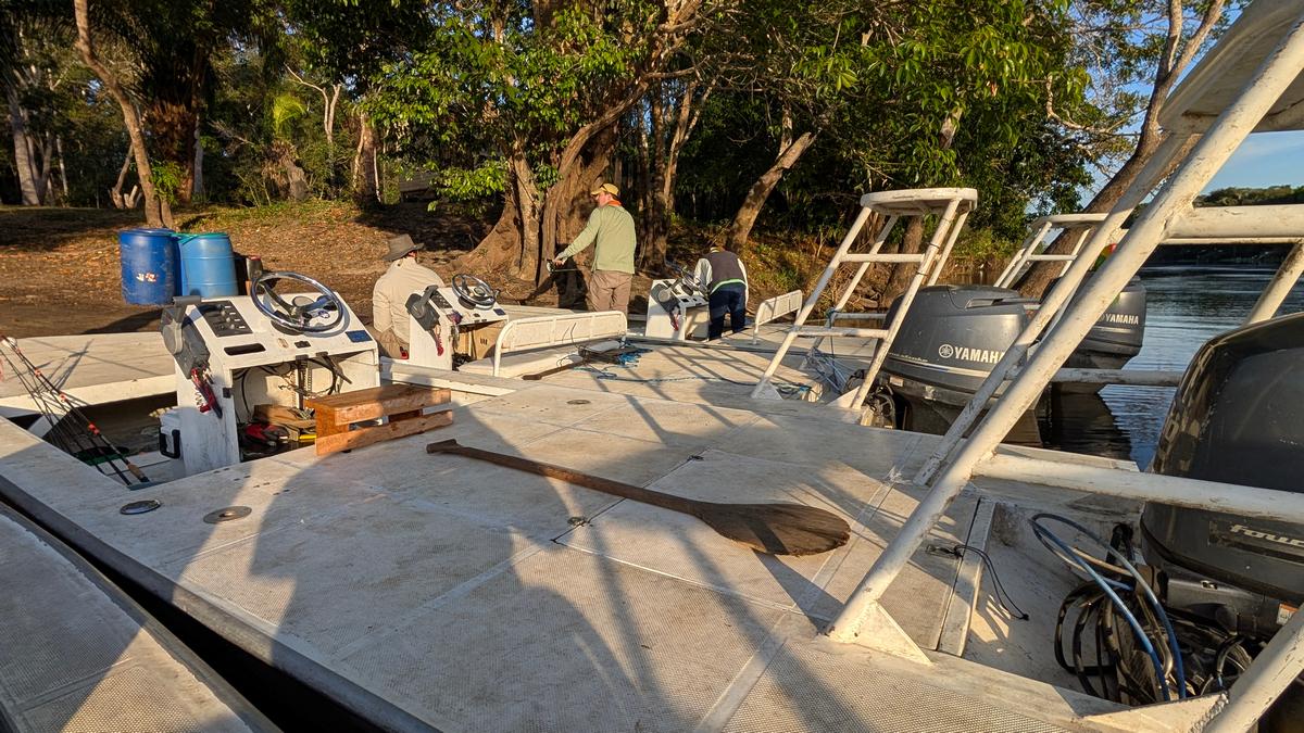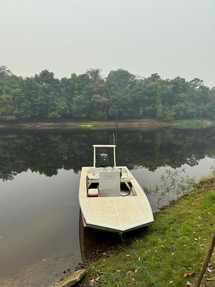 Various types of fishing boats are used at this location. These are flat-bottomed boats and local fishing boats of around 16 feet, which are sailed by local guides. Because arapaima are extremely shy fish, the outboard motor is turned off during fishing and the boat is propelled solely by paddle. This means the fish are less likely to be scared off, greatly increasing your chances of catching them.