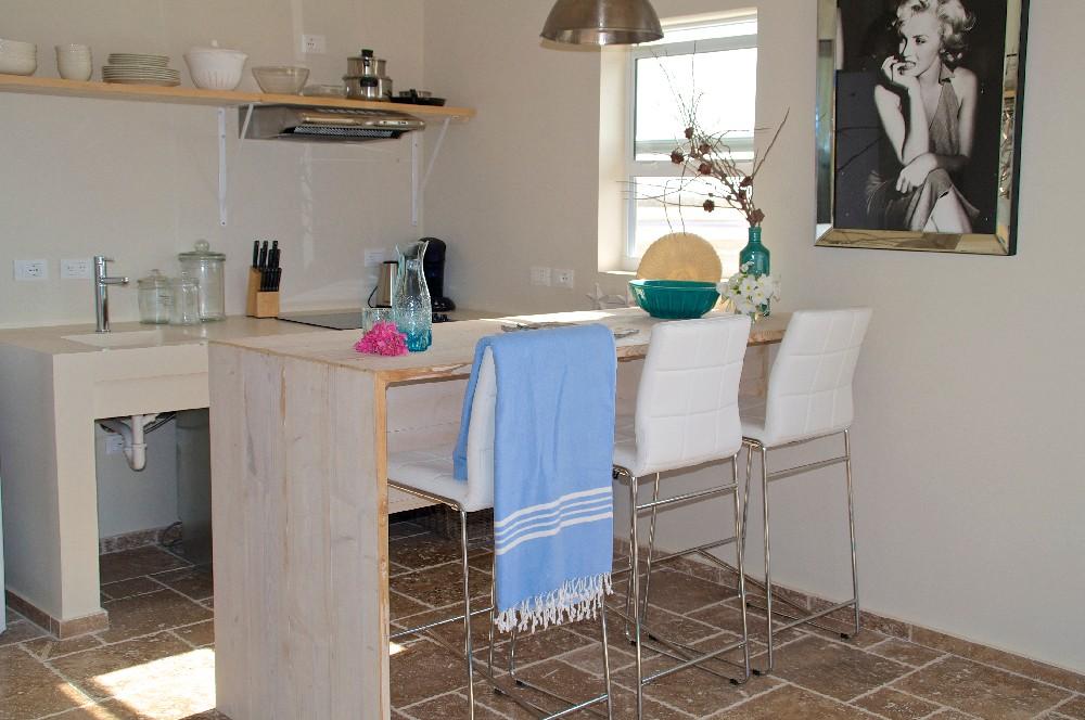 The largest apartment has a spacious balcony with a beautiful view of the sea and Klein Bonaire! The apartment is suitable for one, two or three persons (extra bed) and has an outdoor kitchenette and hammocks where you can relax. Furthermore, this apartment has its own entrance, where you have to climb two stairs, but what it's so worth. The spacious balcony, the hammocks outside and the view make this small climb even better!