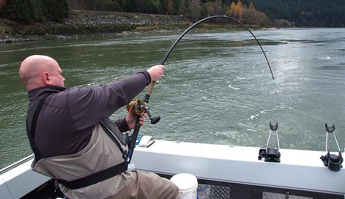 Salmon fishing starts on 1 June with the chinook. This is also the official start of the season. This species can grow up to 60 lbs. and is the ultimate salmon species. A strike from this species in the right size results in a beautiful fight that you will remember for a long time. Here, of course, the weather is also an important factor. The raincoat is definitely part of the equipment as well as the cap, sunlotion and sunglasses against the summer sun.