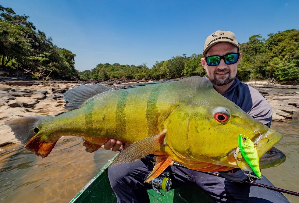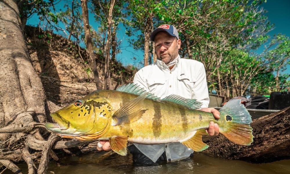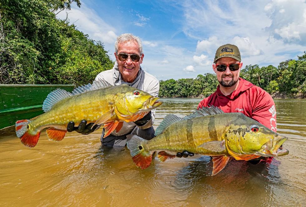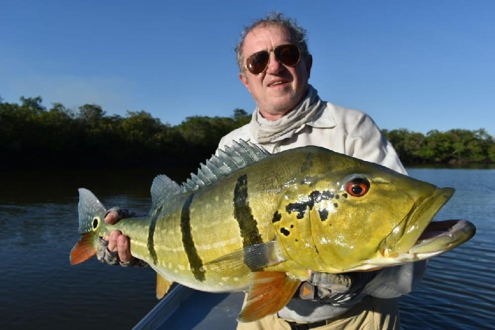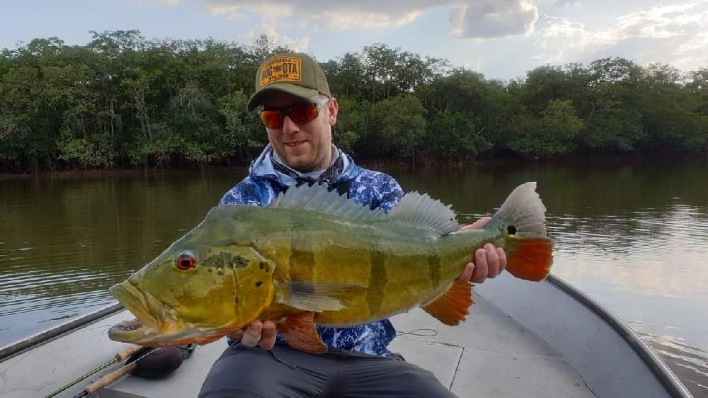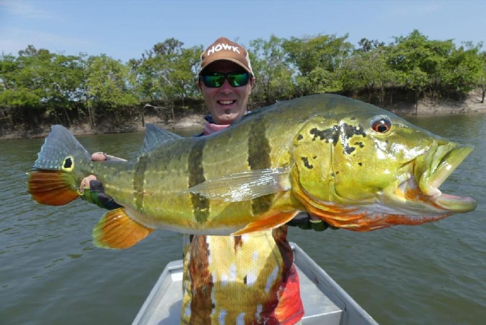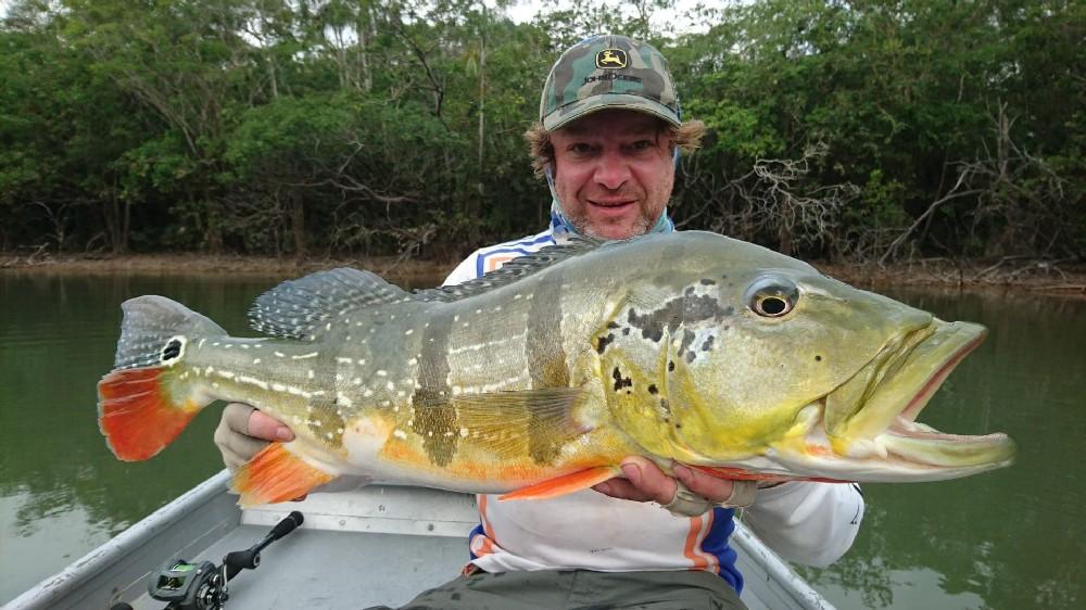 This fishing is very diverse and the species caught here are: matrinxa, payara, speckled and normal peacock, sardinata, black pacu and shovelnose catfish. The largest peacocks are around 20 pounds and you hook between 10 and 20 a day with an average weight between 12 and 20 pounds. It is fantastic to have one species of this size on a fishing location but then so much makes it clear why this is an absolute top location with ditto fishing.