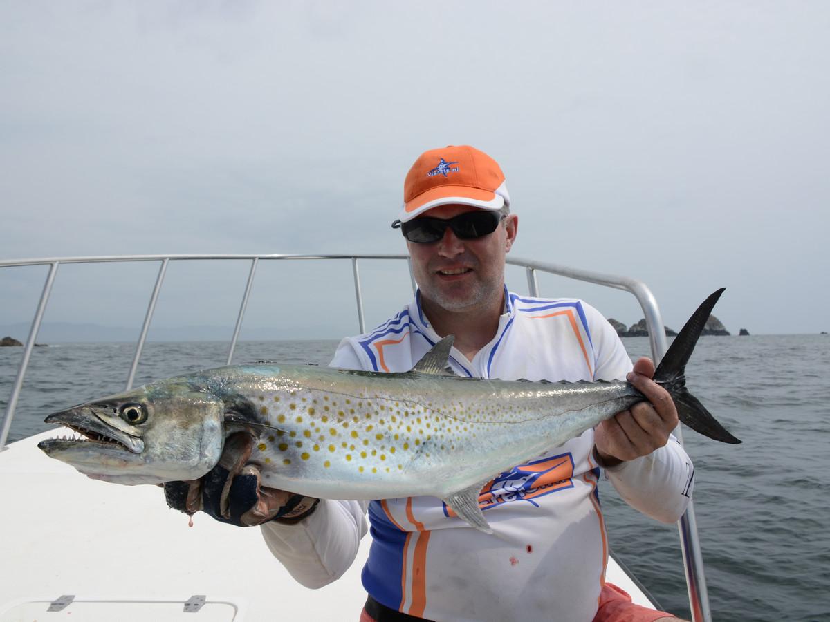 At this location we fish all year round for cuberas, roosterfish, groupers, snappers, tuna, jack crevelle etc. However, there are specific seasonal features that apply to the fishery. January and February are the two top months for offshore fishing. Blue, black marlin, 100 lbs + yellowfin tuna, trophy sailfish and bull dorado are the extra targets. In March and April the numbers of marlin are slowly decreasing but the inshore dolphin fishery is top. And this is also the best period for large yellowfin tuna. May and June are sailfish months as the large schools of baitfish migrate from the south and the sailfish follow them. Several fish a day and double and triple hooks up are common. Slow trolling with live bait is also very productive during this period for large grate fish and pacific tarpon. In July and August the temperature gets a little cooler and the marlin gets closer to the coast and especially the inshore fishery for Cubera Snapper is at its peak. September and October guarantee great wahoo, good inshore fishing and in the offshore fishing the blue and black marlin also pass by again. November and December are good all-round months with large schools of dorados, sailfish, cuberas, jack crevelles and amberjacks provide a very varied fishery. A very varied fishery all in all.
