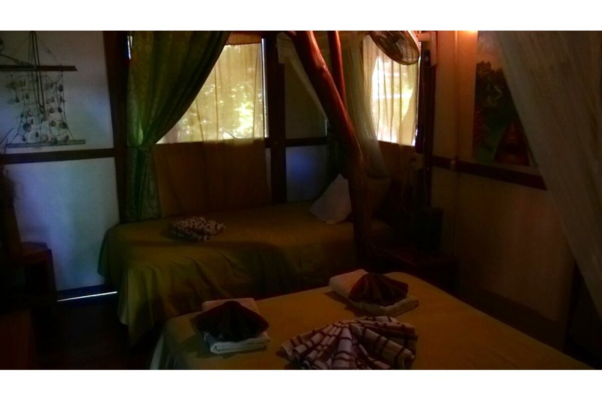 El Yayo: The large wooden house in which you stay has 3 large rooms and is located on the edge of a hill at the edge of the jungle. On the second floor are 2 rooms and there is 1 more room on the first floor. The rooms are large enough for 2 to 3 people and have hot water in the shared shower facility. There is also a kitchen for enthusiasts with a refrigerator and a stove. Furthermore, all rooms are equipped with fans.