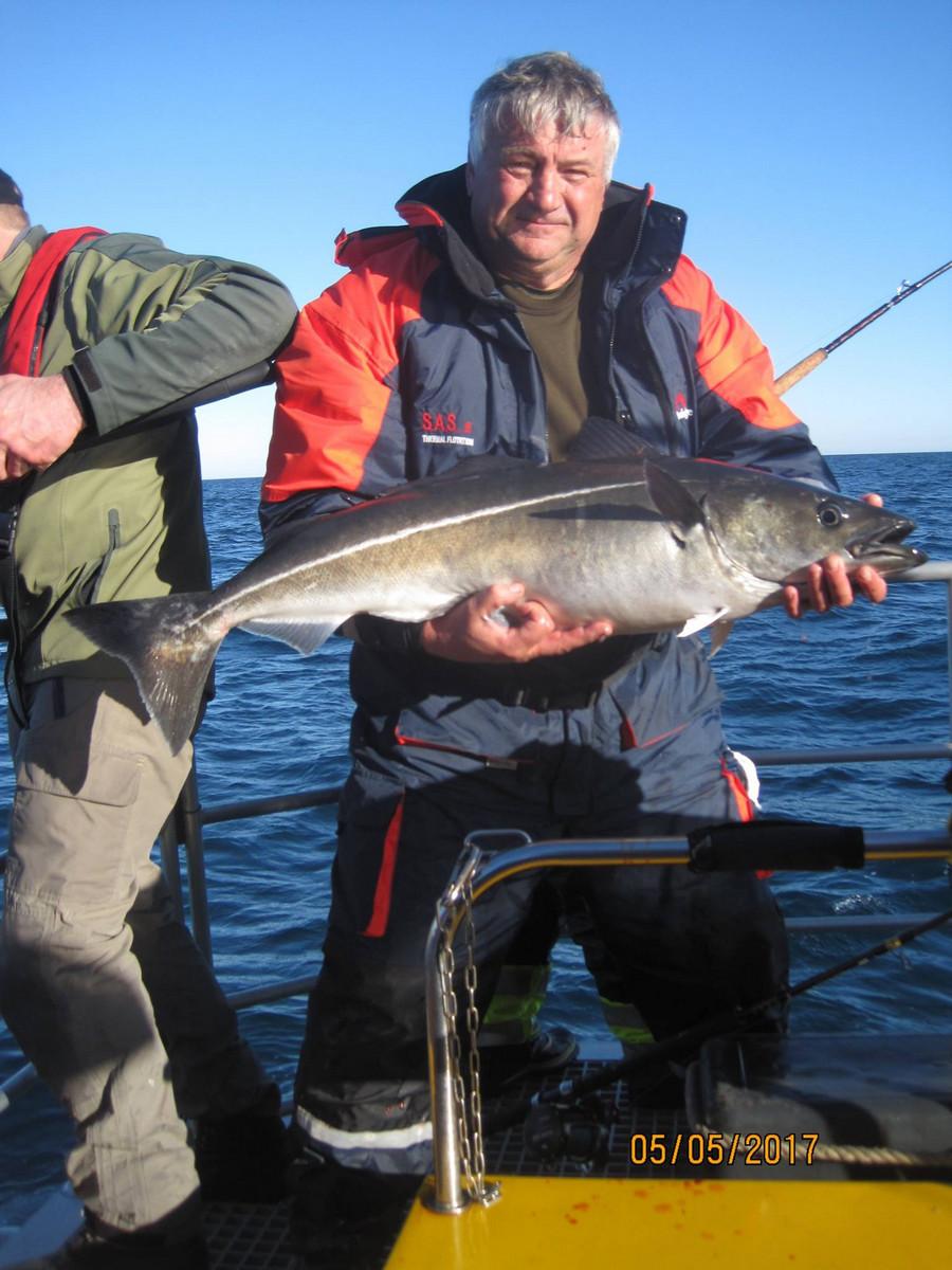 Fishing takes place between 30 and 100 meters and is mostly done with boat rods from the 10 to 20 lbs category. Pilks and shads vary, depending on wind and current, from 100 to 350 grams. All in all, the fishing day lasts between 8 and 12 hours and you get your money's worth. The fishing in this lkocation by boat is done from the beginning of april till the end of June. You can join this trip also as an individual person.