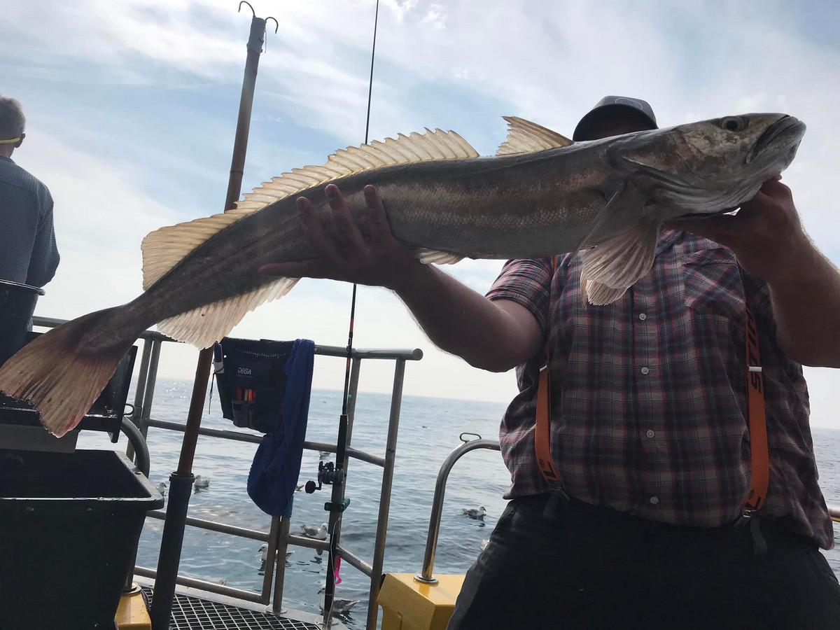 From Hirtshals sport fishing boats sail to the yellow reef which also hold some ship wrecks that provide excellent fishing opportunities. The yellow reef is well known and is located a few miles off the coast of Denmark. Many and large fish are always caught here. Think of cod but also coalfish, ling and sporadically hake, halibut and wolffish are caught. The yellow reef is about an hour and a half sail away and from the surrounding depths of the North Sea this reef rises to 30 to 60 meters below the water level. A perfect spot with lots of food and therefore also fish.