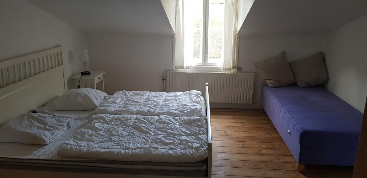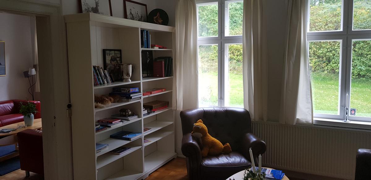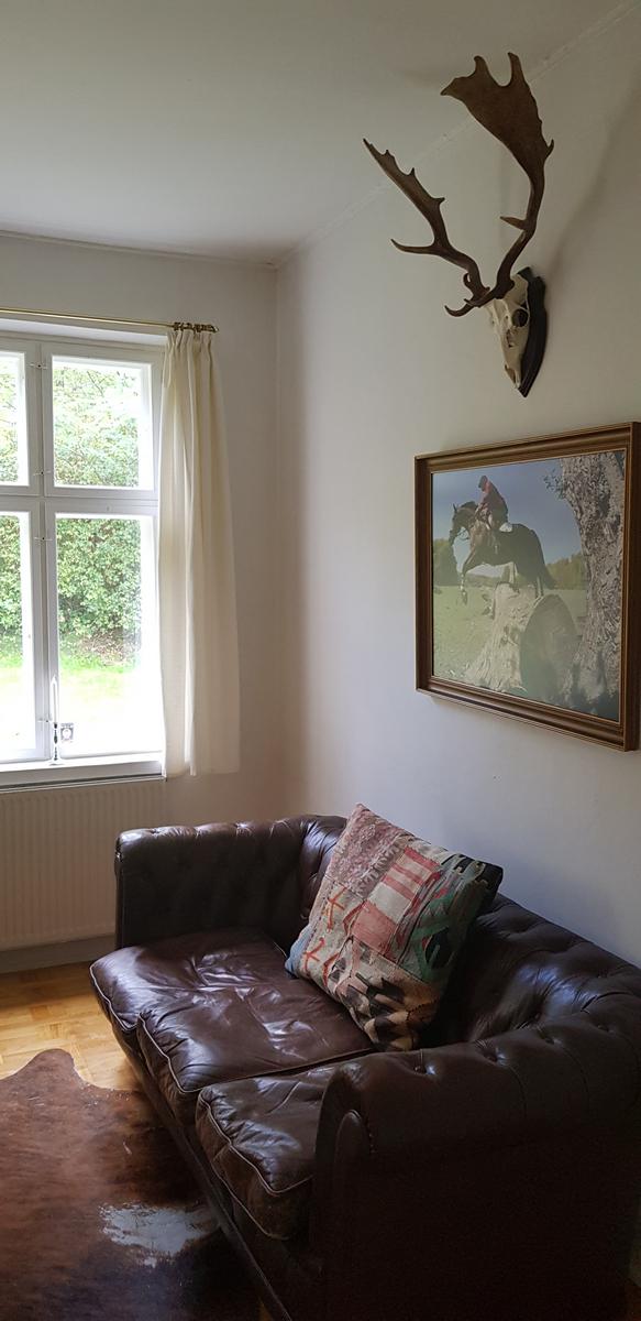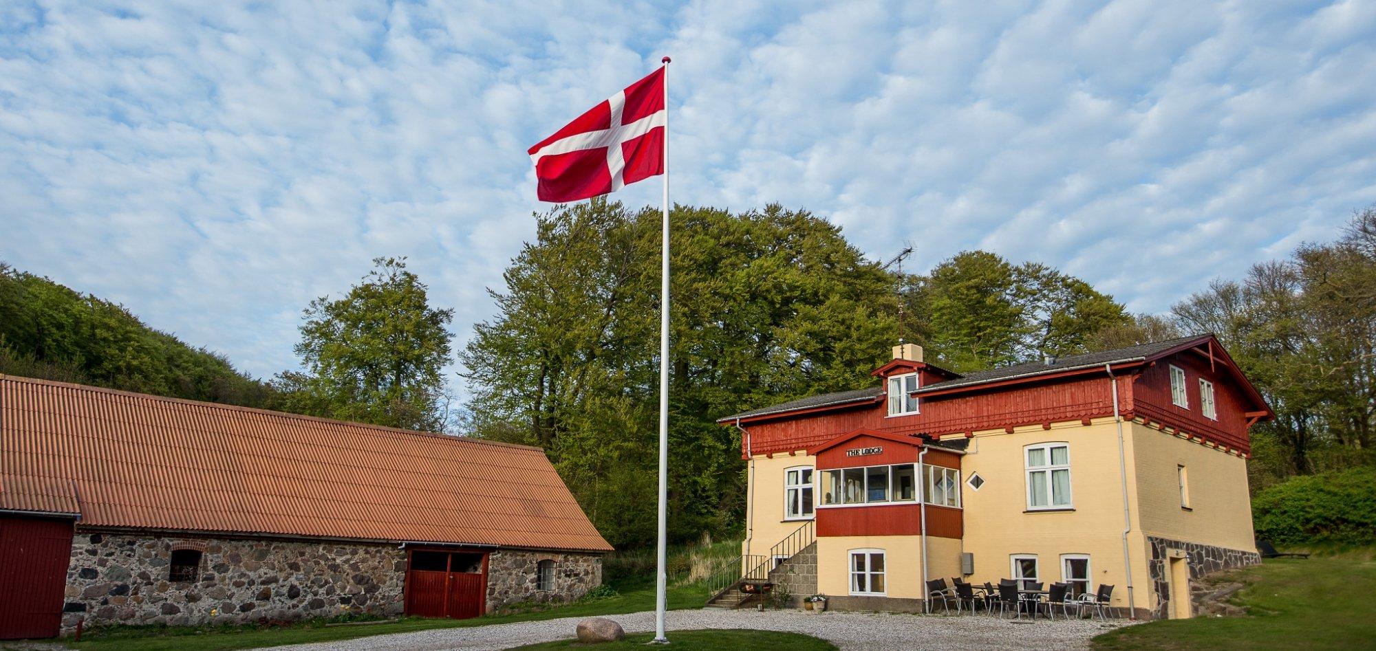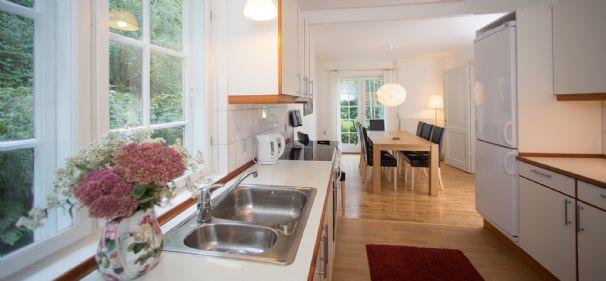 The lodge This is a beautiful and stately home that was built in 1870 and stands close to the cliffs of Moen. Peace, space and perfect for anglers! It is 500 meters away from the steps of Gråryg which descends directly to the beach. The Lodge is equipped with a modern large kitchen adjacent to the dining room. In the garden there is a wood-burning stove and a fully furnished terrace with a beautiful view to the west. There are 2 bathrooms with shower and an extra bath in the basement. There is a cozy living room with TV and sofa. On the first floor there are 5 bedrooms with a double bed and closet space. In total there can sleep 13 people. Furthermore, there are facilities such as a traffic jam, freezer and running water. The house can be rented all year round and wifi, electricity, water, heating and wood for the wood stove is included.