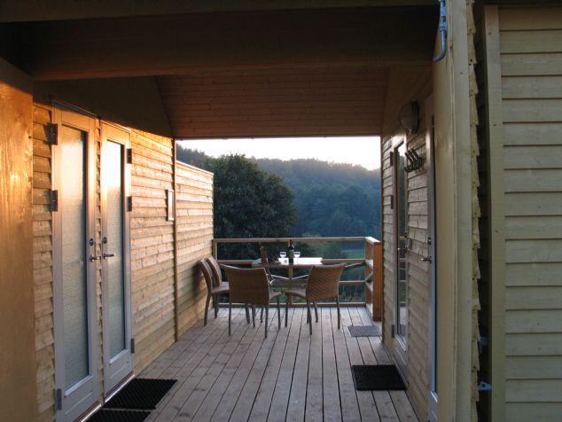 House of Snow white This property is located directly against the forest and has a beautiful view. The house has 3 bedrooms and can accommodate up to 7 people. 1 bedroom has a double and a single bed and the remaining 2 bedrooms each have two single beds. On the ground floor there is a kitchen and wooon/dining room and to the outside there is a terrace available. The house can be rented all year round and wifi, electricity, water and heating are included.