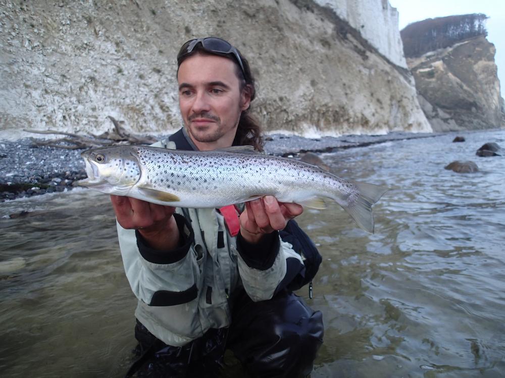 The Danish island of Møn, in the middle of the Baltic Sea, is definitely one of the most beautiful places in Europe. All Danish landscapes are close together: fields and marshes, reed beds and beach meadows, sandy beaches and beech forests - and of course the impressive chalk cliffs on the northeast side which have become world-famous as top spots for sea trout. If you've been dreaming of a large sea trout for a long time, this is the place to be. Fish over 50 cm in length are more the rule than the exception here, and on our test trip we caught several seventy-somethings, with a fish of 75 cm/5-6 kilograms as the top spot.