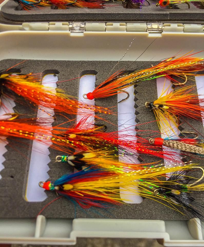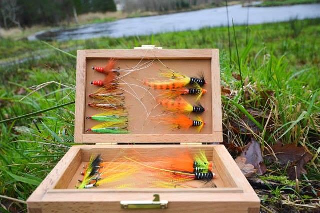 Early season: Sooty Olive, Blae Black, Peter Ross, Golden Olive, Fiery Brown, Connemara Black, March Brown, Black Pennel. From May: Gosling, Green Olive, Yellow Mayfly, Green Peter and Grey Wulff. As of July: Watson's Fancy, Green Peter, Mallard & Claret, Claret Bumble, Fiery Brown, Invicta and Kingsmill.