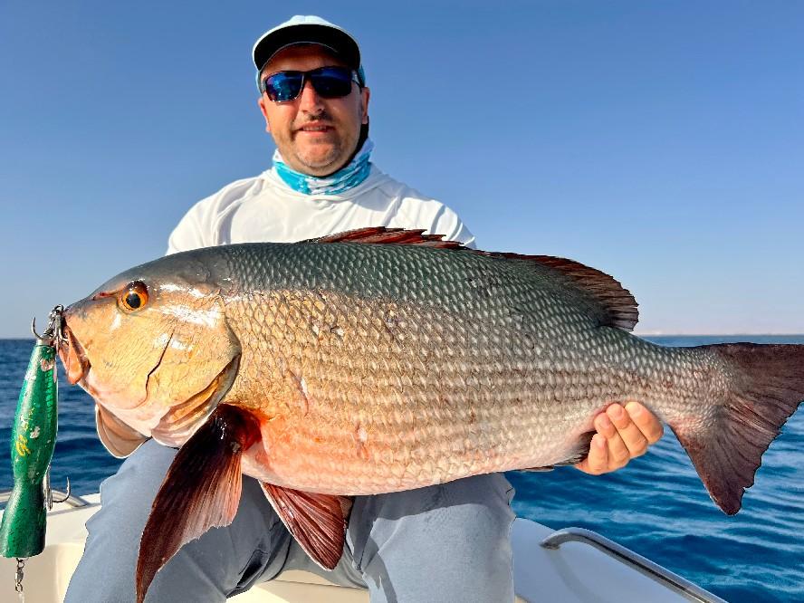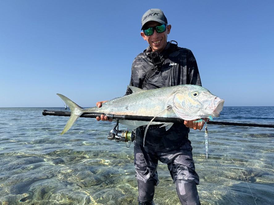 The captain has ample experience in fishing these waters. The fishing techniques that are used here are slow and speed jigging, popping, casting, trolling, bottom fishing and live bait fishing. So there is enough choice for everybody to enjoy a beautiful week of fishing on the Red Sea for targeting species like GTs, Dogtooth Tuna, Yellowfin Tuna, Coral Trouts, Amberjacks, and a lot more. In addition, being an IGFA captain in Egypt, he is also an IGFA world record holder.