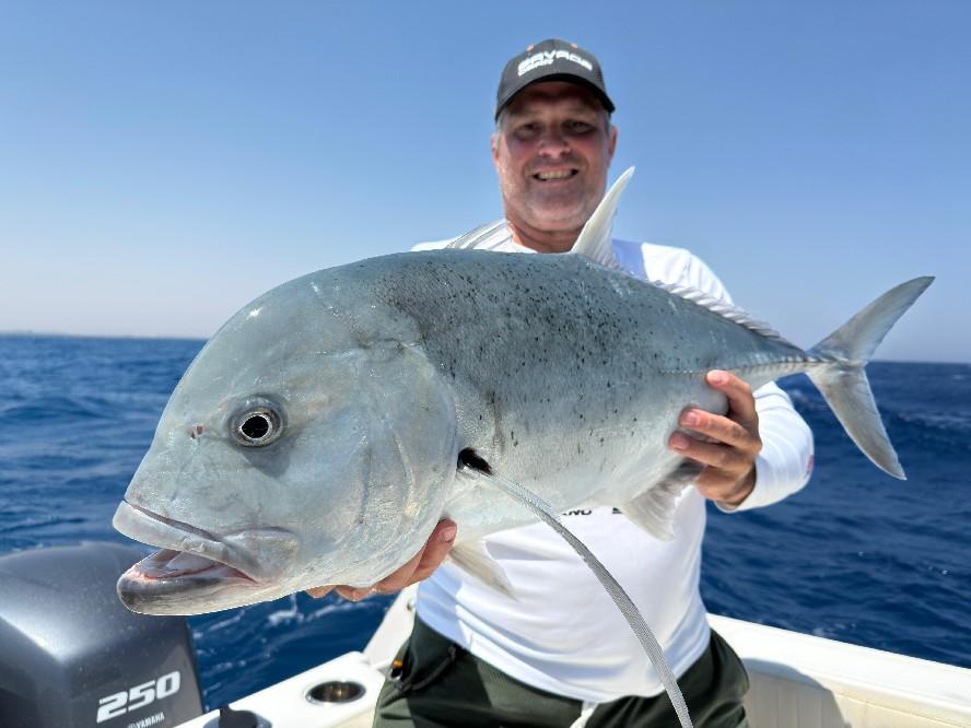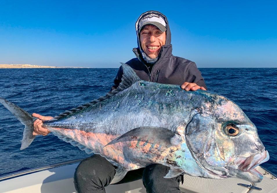 The Red Sea is only a few hours by plane from central Europe. But the number and size of fish you can catch here are impressive. Serious GT, tuna, dogtooth, king mackerel, barracuda and many more are fish that a real fisherman or -woman needs to have on his or her list of caught fish. And if they are still on your bucketlist then this is the place to check that box! Not too far away, great captain and crew who speak English, very knowledgeable about the fishing and the best spots in the area and for a very decent price. Grab your chance, check the bucket list and fly to Hurghada with us.