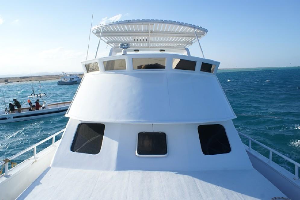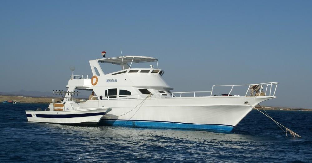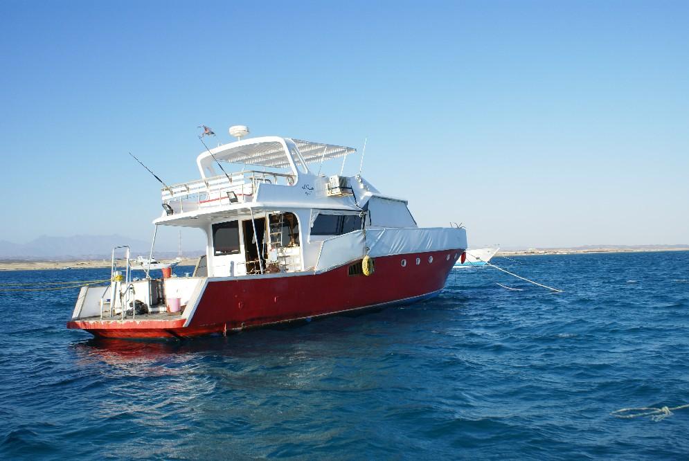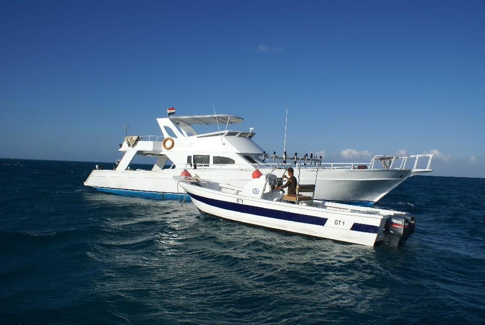 If you choose to go on a fishing safari, you will stay on the decently equipped 22-metre long mother boat. The boat is equipped with GPS, fish finder, generator, radio and complete cartography of the Red Sea. The boat has three double rooms, two shower/toilet combinations. Furthermore, guests have access to a spacious foredeck, aft deck, terrace and dining area above deck in the shade. Furthermore, there is a TV with DVD, kitchen and is thus perfectly equipped to host a fishing safari of a week or more! On the spacious shady upper deck you can relax after a day of hard fishing while enjoying a drink and watch the sun go down and admire the stars. The boat will be sailed by an experienced captain who knows these waters well. If the group consists of 7 or 8 people, an even larger mother boat will be used with four double rooms available on board. This boat obviously has the same equipment as described above.