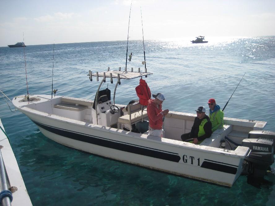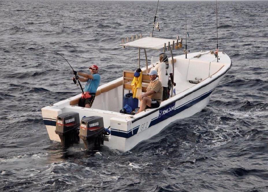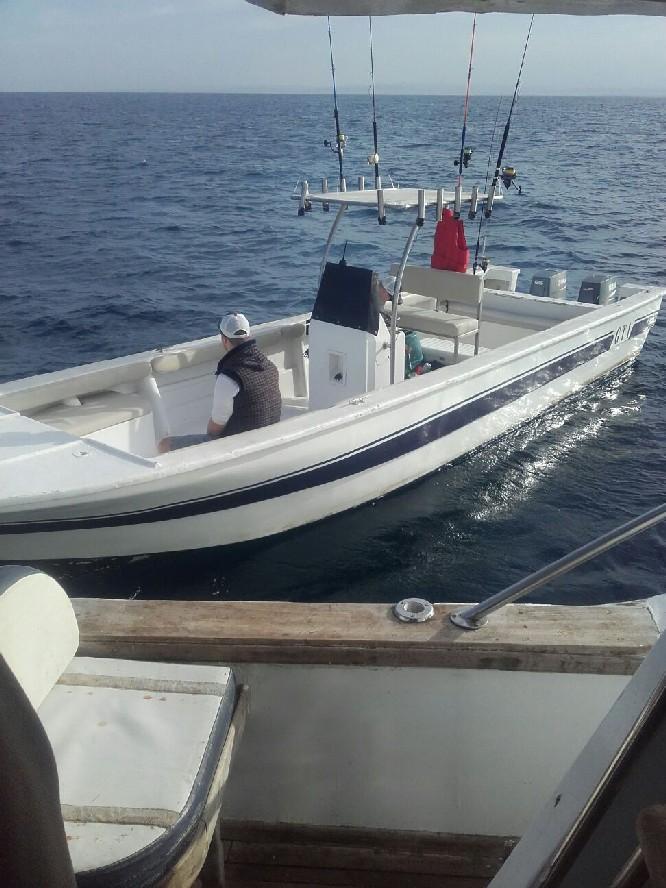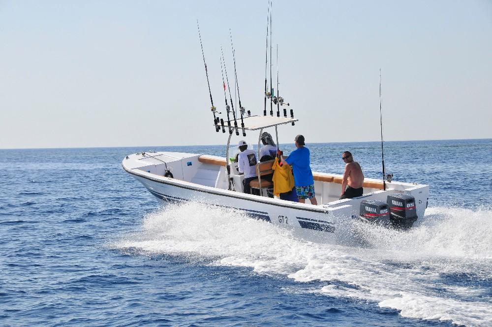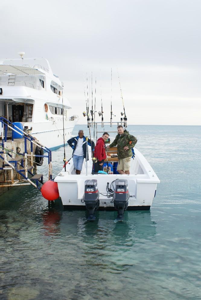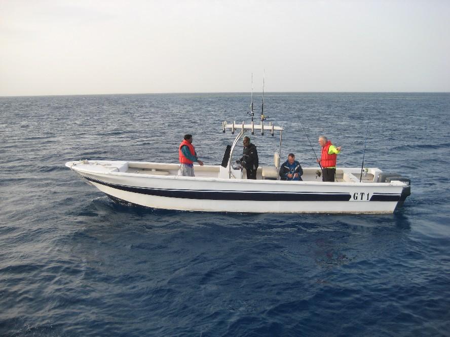 The two centre console boats are 9.7 meters long and are both equipped with two 85 HP engines. They are equipped with all desired (safety) equipment and can accommodate up to 4 anglers each. They are perfect for this fishing and offer maximum fishing comfort due to the walk around construction. These are the best fishing boats available in this part of Egypt!