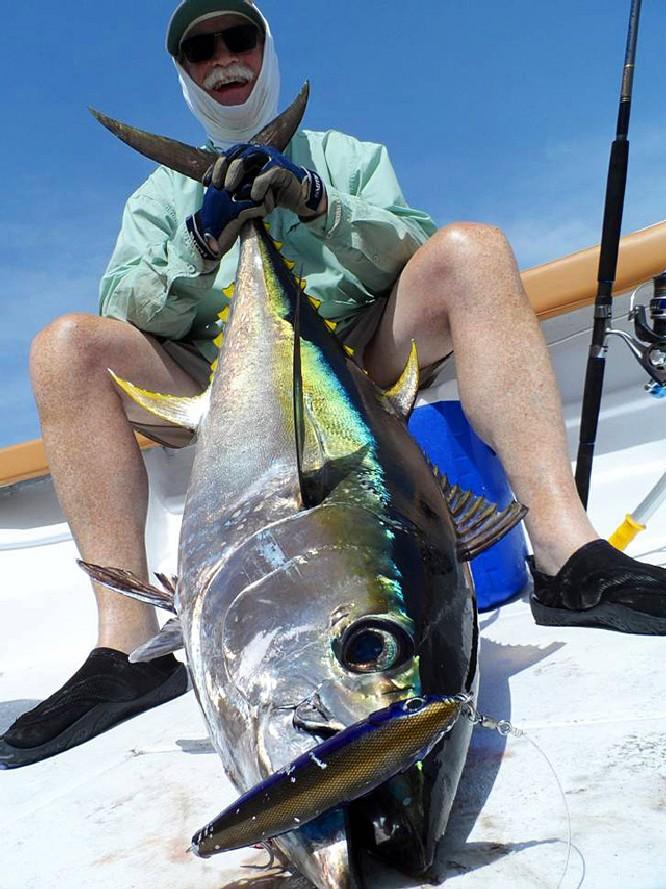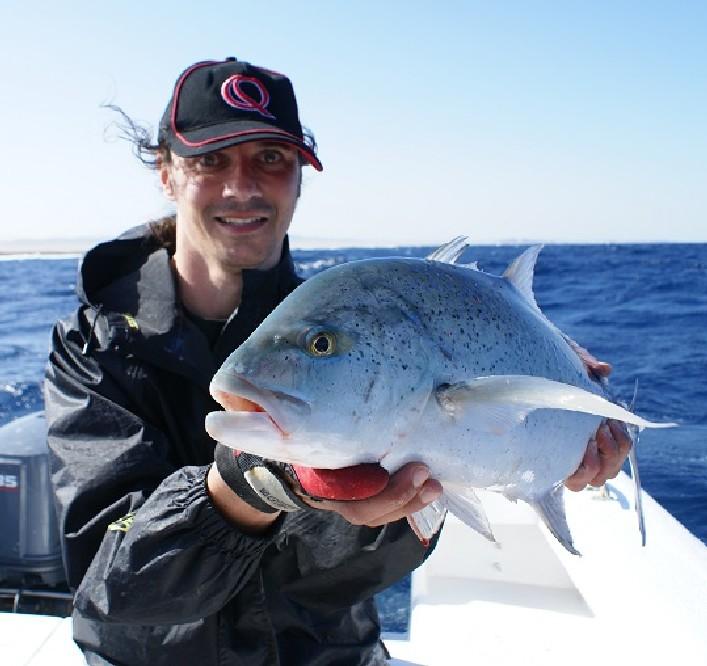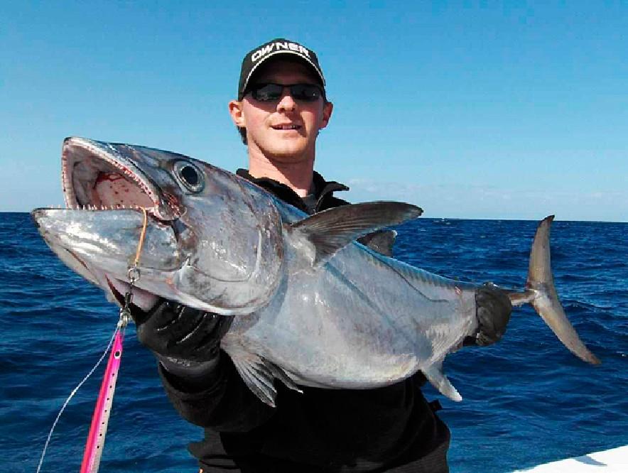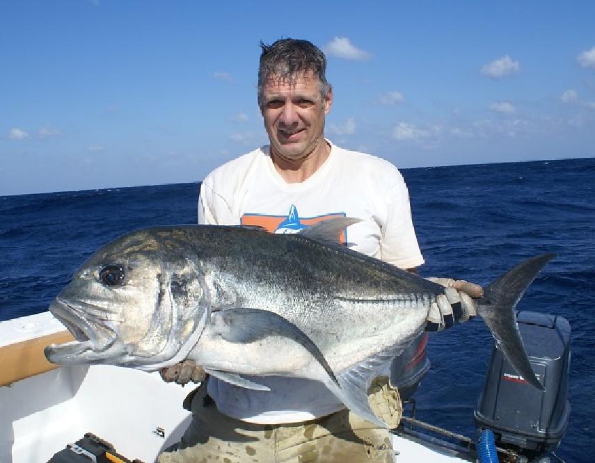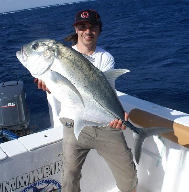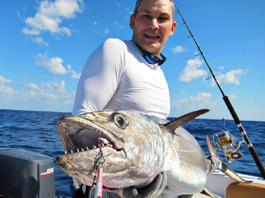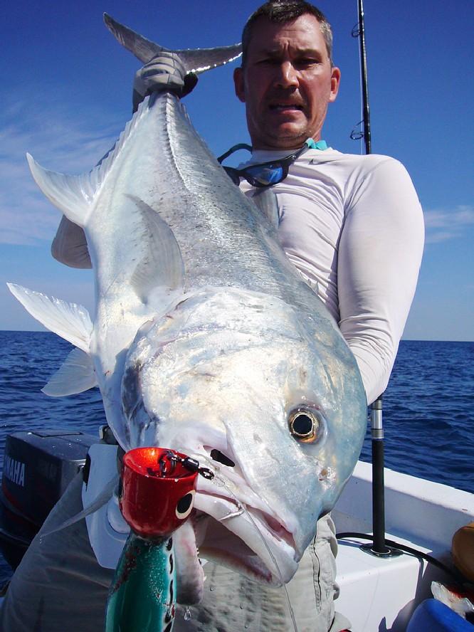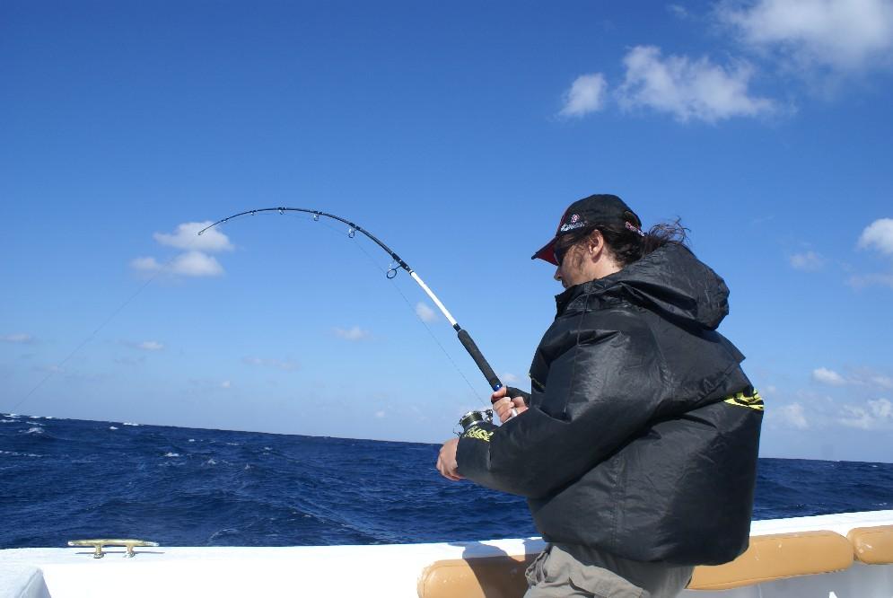 For this fishing it is necessary to bring your own equipment. For popping, a rod of around 2.4 to 2.7 metres and a casting weight of up to 250 grams is required to be able to cast the desired distances to the reefs. For jigging a short sturdy boat rod of up to 50 lbs is desirable. This in combination with a very fast retrieving reel and a sturdy braided line of around 30 kilos of breaking strength. As a leader a 150 lbs shock leader of 1 to 1.3 meters is used.