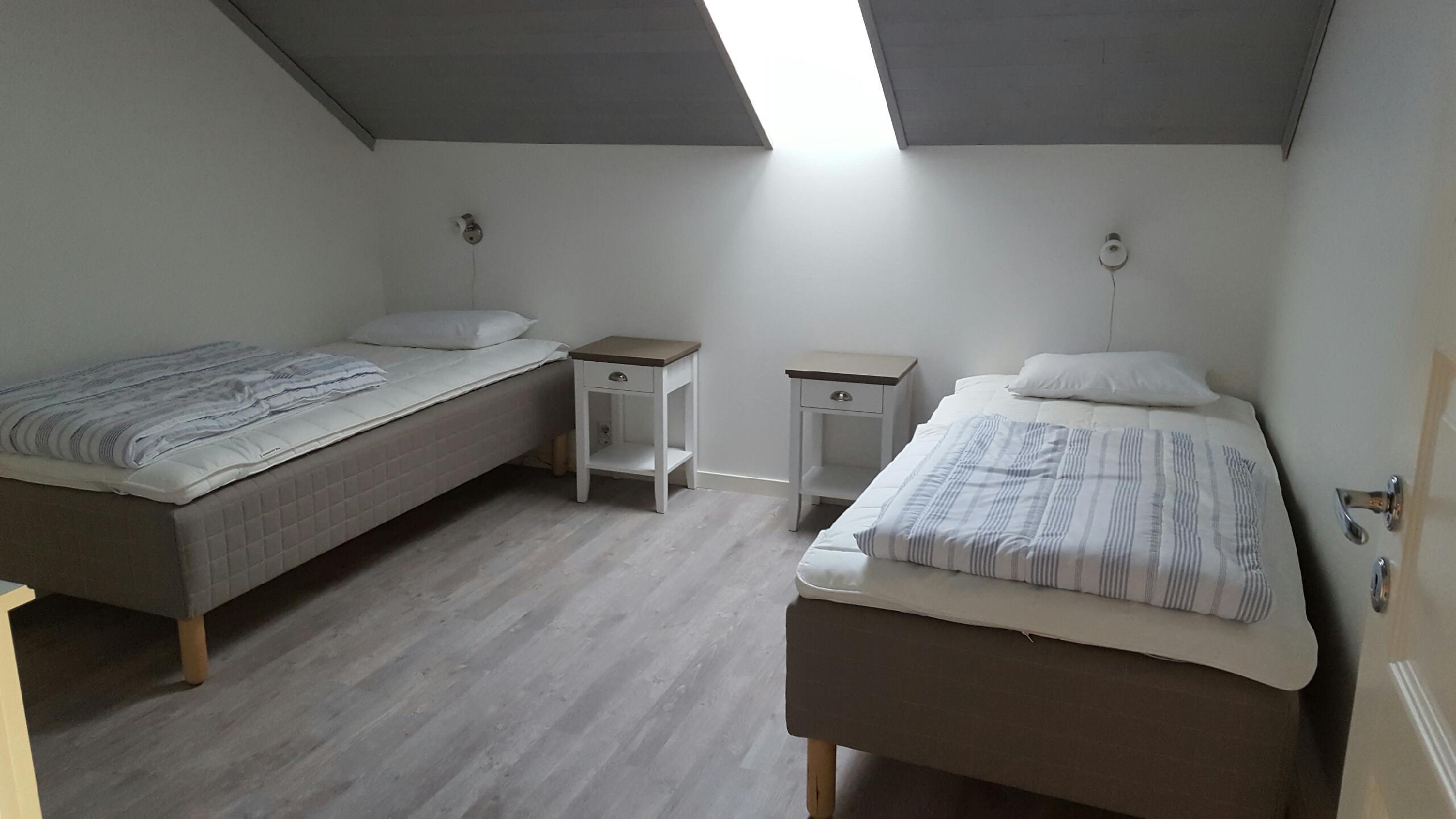 A typical Swedish house of 65 m2 with lots of wood and character. It has a large kitchen and dining area, living room with spacious sofa, TV and fireplace. There is a bathroom with shower and toilet. Upstairs are two bedrooms, one with a French double bed and one with two single beds. The distance to the water is 100 metres.