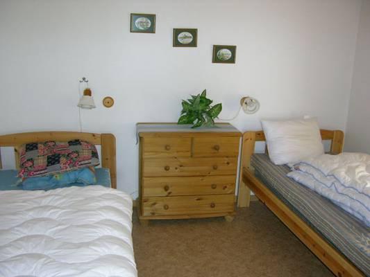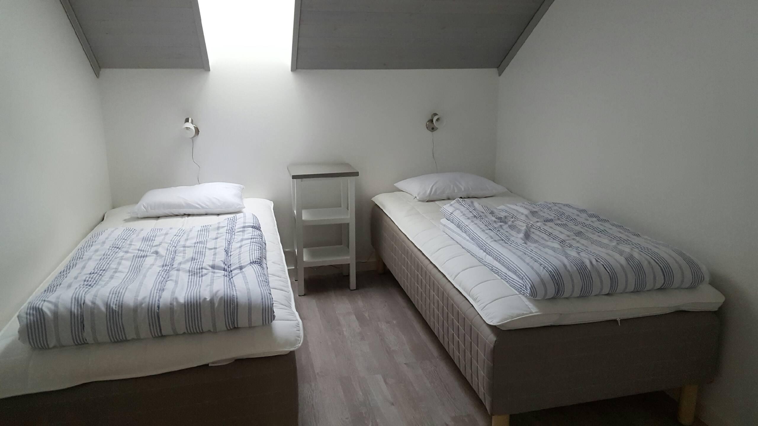 The house is 50 m2, is located 100 metres from the water and has 2 bedrooms each with two single beds and a small private sauna.
