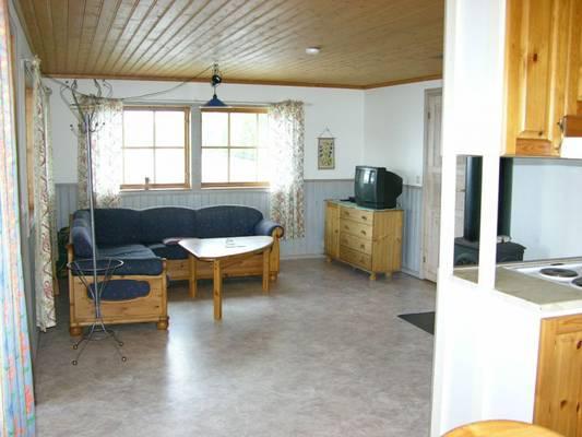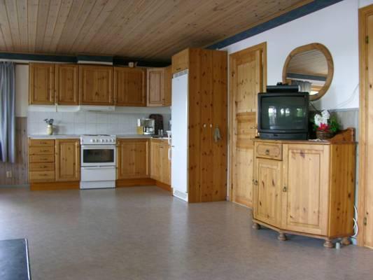 This beautiful wooden house stands is located directly at the water, is 70 m2 and suitable for 4 people. It has a studio kitchen, spacious living room with sofa, wood stove, electric heating and TV. There are two bedrooms, one with double bed and one with two single beds. It is possible to rent a small separate dormitory extra to stay here with 6 people.