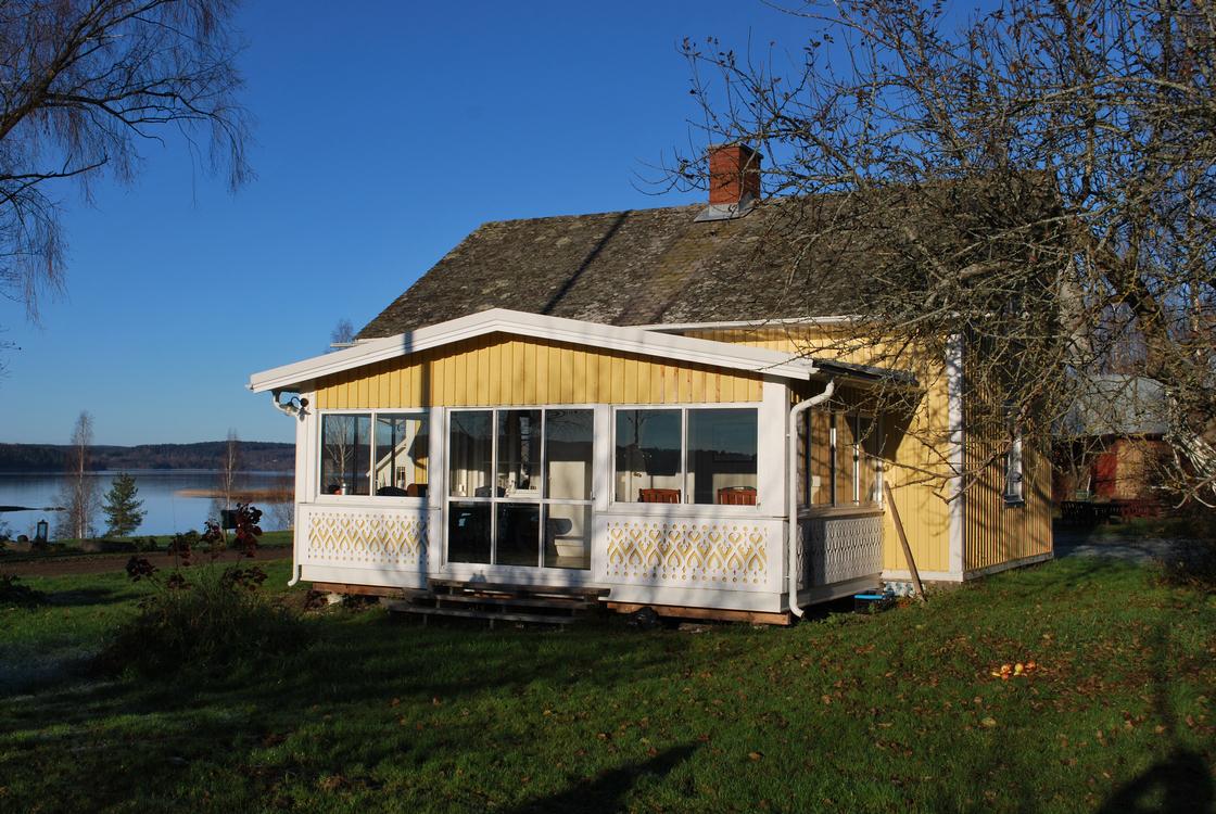 This house is simple but fully furnished and can accommodate up to 4 people. This house also includes a pavilion directly on the water. The house stands on a large plot where also the general laundry- and sauna room for all guests are located.
