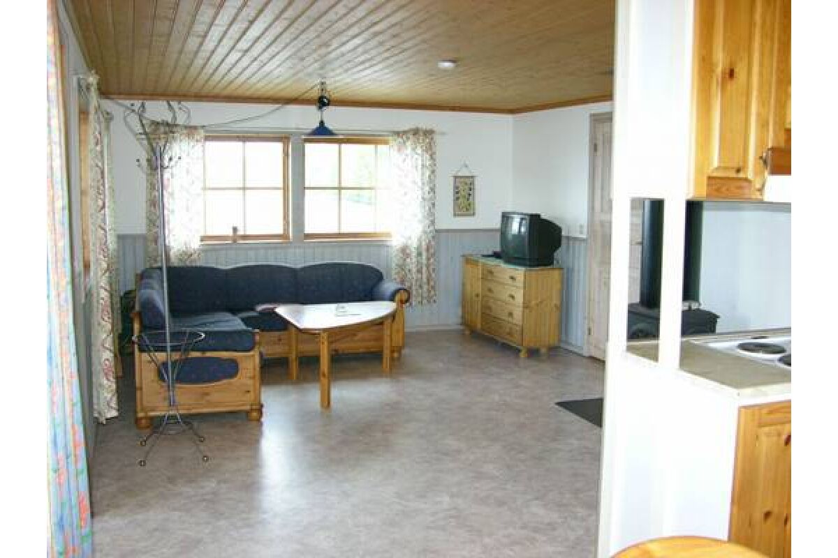 This is a cosy holiday home with a nice terrace and views of the lake. The house is 50 m2 and has 1 bedroom with 2 single beds and 1 bedroom with a bunk bed. There is a bathroom with shower toilet and is only 80 metres from the water. The living room has a spacious sofa, wood stove, dining area in the spacious kitchen and electric heating.