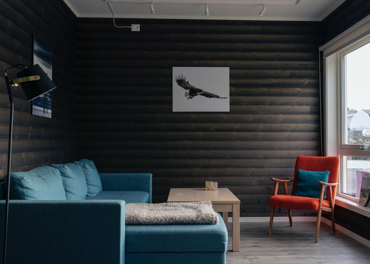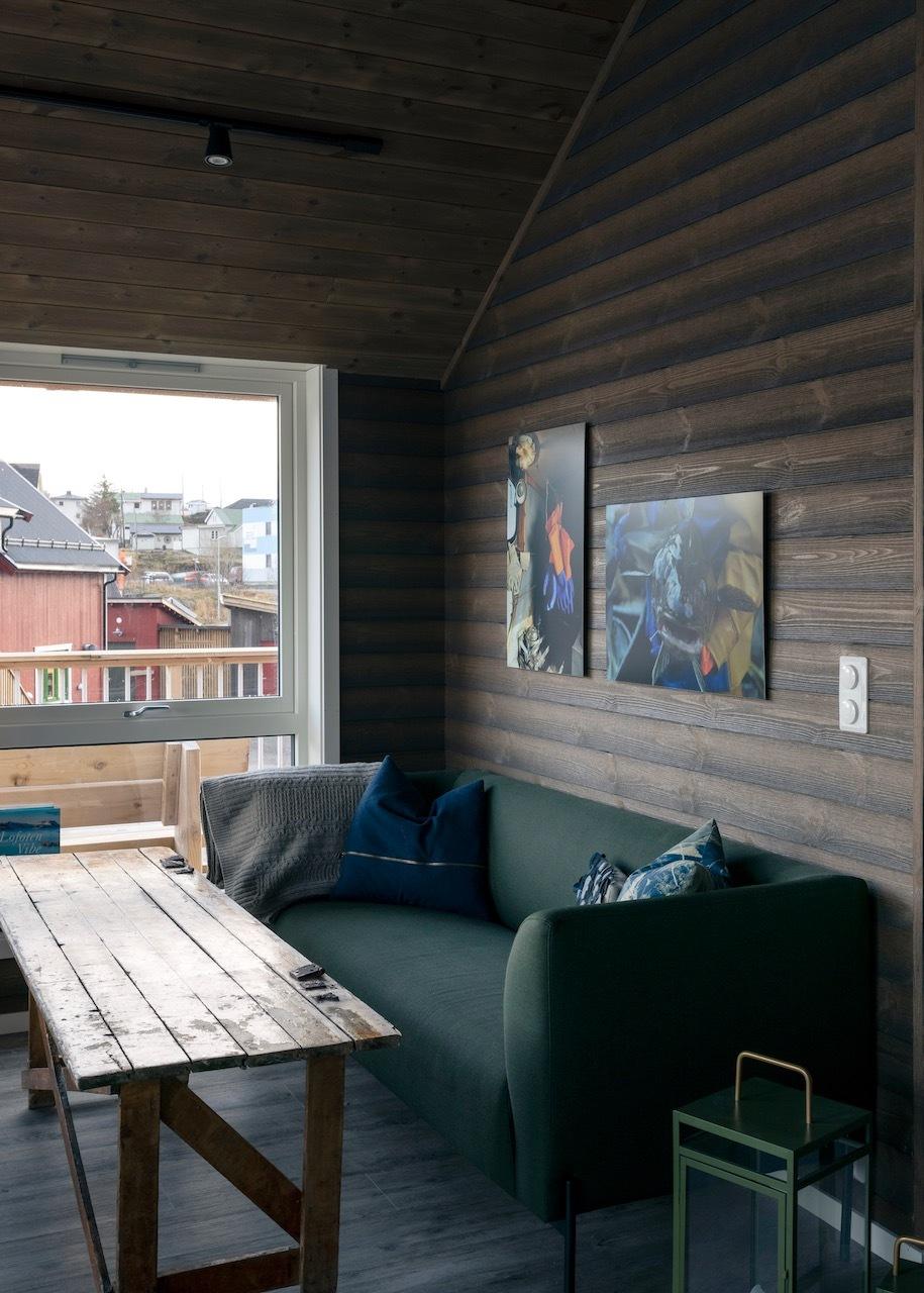 Olufbua is a budget-friendly and practical alternative for families and groups of up to five people. This fisherman's cabin is in traditional style and has plenty of room for an entire family, or an eager group of fishermen. Olufbua is located on the ground floor, with access to communal patios right outside the door. Here you can enjoy your morning coffee on one side of the house and the evening sun on the other. The apartment has two bedrooms and a practical kitchen and bathroom. Suitable for up to five people.