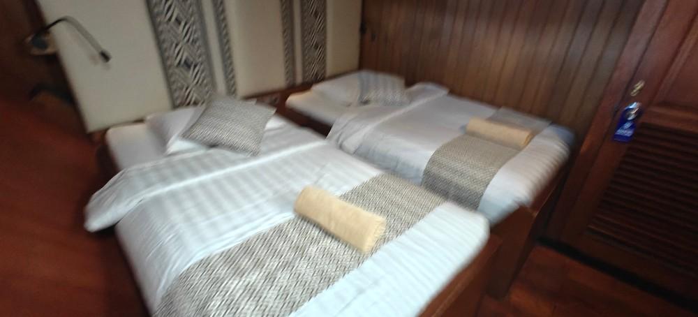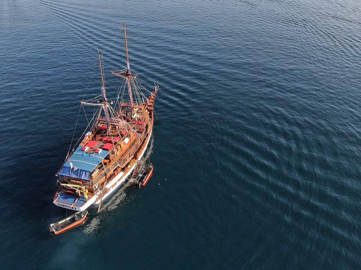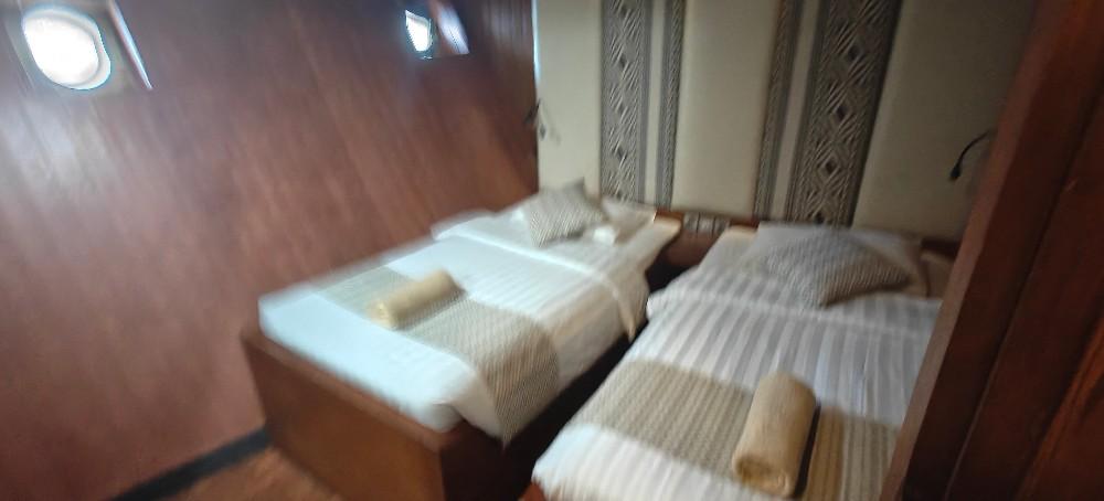 Sea Safari 7 With 14 en-suite air-conditioned cabins, she is our biggest vessel that can accommodate up to 28 guests. She is based in Labuan Bajo and provides comfortable living areas for diving and leisure liveaboard. Facilities include spacious restaurant area, lounge area, bar, dive deck, sun deck, and Jacuzzi. Phinisi Buginese Schooner, Ulin / Ironwood, Indonesia, 7 - 10 Knots, 37.5 m length, 11 m width; Accommodations: 14 deluxe cabins: 28 guests capacity, 6 double bed cabins, 8 twin bed cabins, en-suite bathroom with hot & cold shower, air-conditioned cabins, hair dryer, bath robe & towels, safety box, hand sanitizer