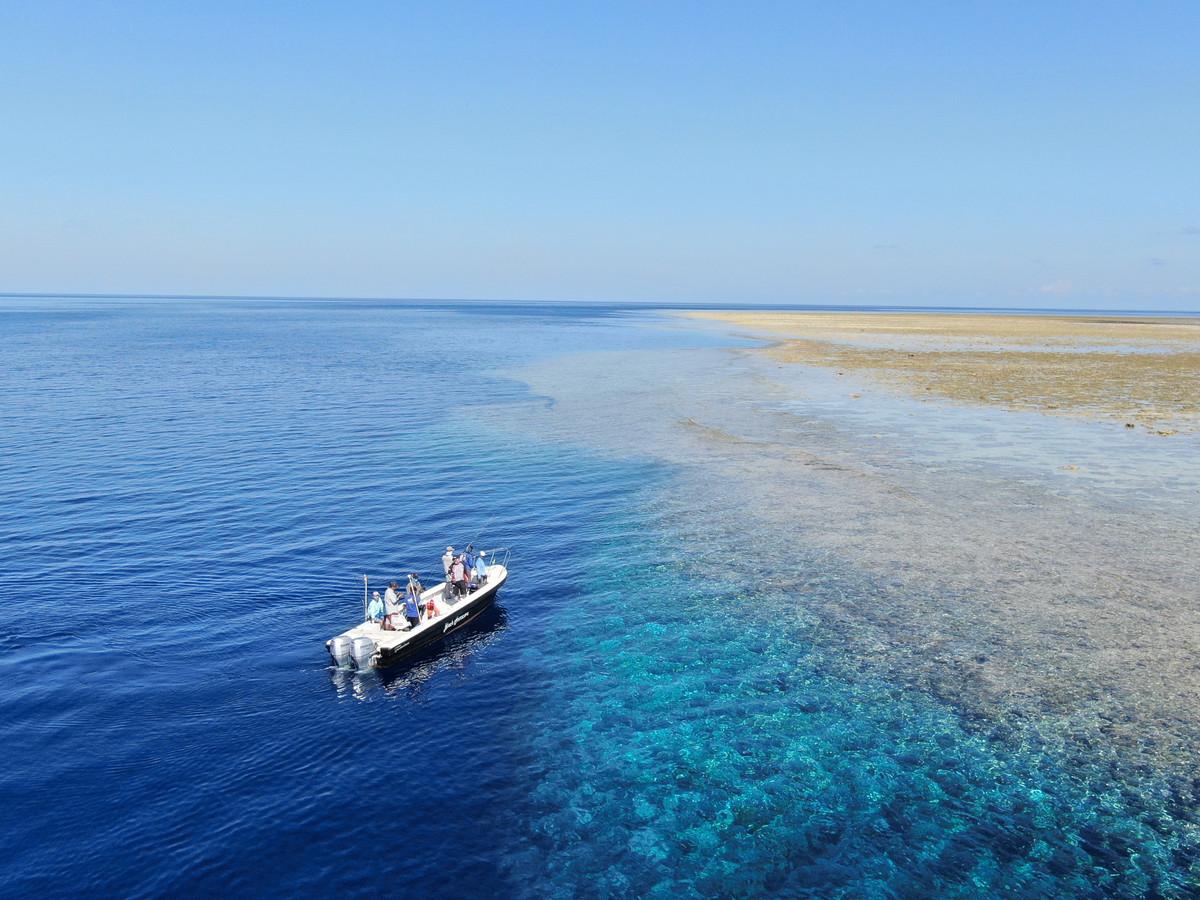 All 4 locations have the same principle. You check in on a comfortable mothership and you sail to the remote destination of your choice. The motherboats can accommodate up to 20 people but for the fishingtrips usually book between 10 and 14 fishermen. When you arrive at the remote location each motherboat has several smaller boats where the guests can go and fish the empty atolls, drop offs and reef ends where there is untouched fishing.
