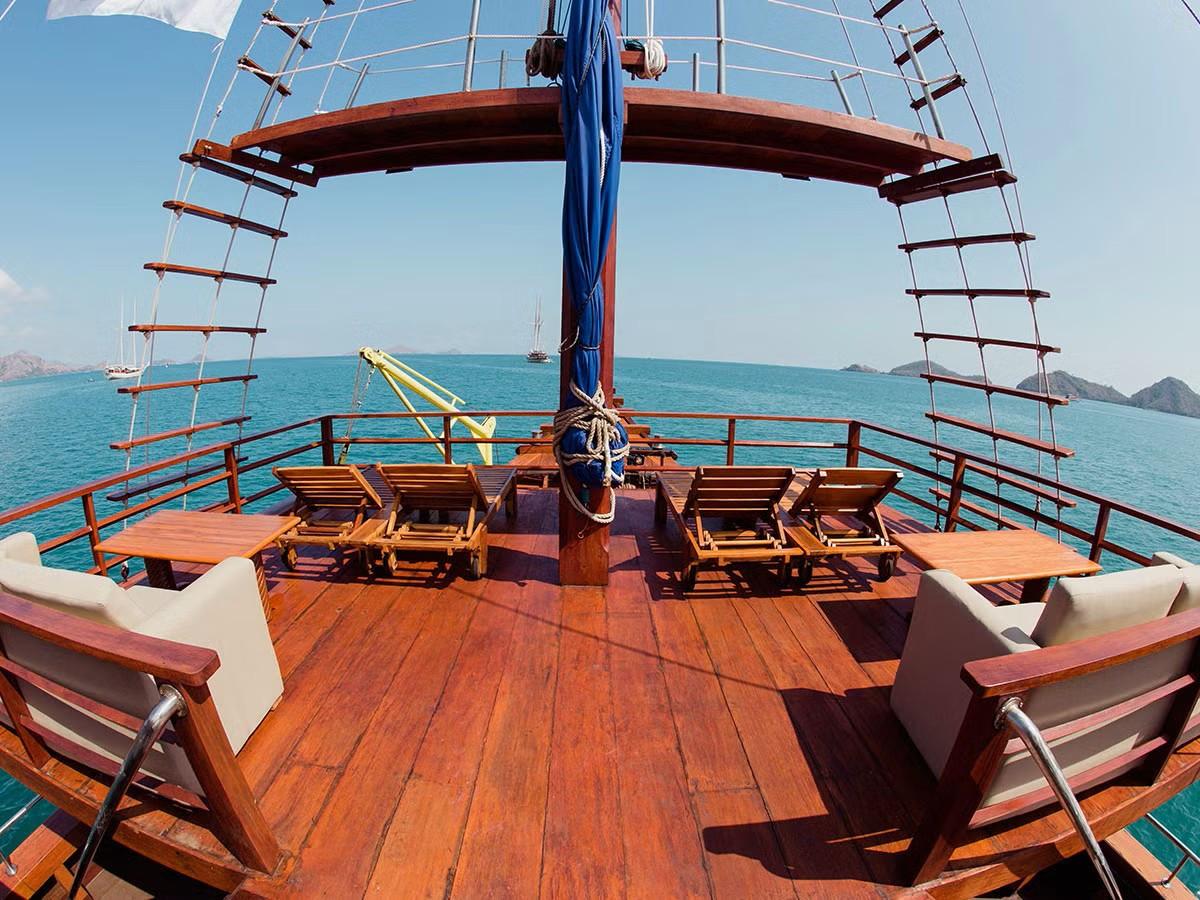 Cheng Ho Comprised of 4 decks with 14 en-suite air-conditioned cabins, she provides comfortable living space for you and your family. Facilities include spacious restaurant and bar area, lounge outdoor, sun deck, dive deck and Jacuzzi. Cheng Ho traverses mainly to Labuan Bajo, Bali, and Ambon Banda Sea. Phinisi Buginese Schooner: Ulin / Ironwood, Indonesia, 7 - 10 Knots, 35 m length, 10.65 m width; Accommodations: 14 deluxe cabins: 26 guests capacity, 6 double bed cabins, 6 twin bed cabins, 2 single bed cabins, en-suite bathroom with hot & cold shower, air-conditioned cabins, hair dryer, bath robe & towels, safety box