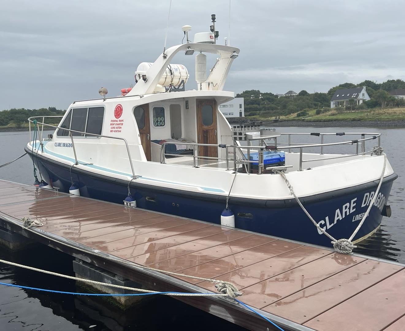 Skippered by Luke Aston, the Clare Dragoon provides a stable and professional platform for an outstanding fishing experience. Luke has been going to sea all his life. Raised in a fishing family, he worked on commercial fishing boats from a young age, initially during school holidays and full-time from 1987. From 1995 to 2004 he captained a 60-foot vessel along Ireland’s south and west coasts. Luke holds a Commercial Skipper’s Licence for boats up to 24 meters, endorsed for charter work, and maintains a range of safety certifications, regularly updating them through refresher courses. Luke’s extensive experience, both as a commercial and charter skipper, gives him an intimate knowledge of the local fishing grounds, allowing him to get the very best out of your trip. A keen angler himself, he is always on hand to offer advice or lend a helping hand.