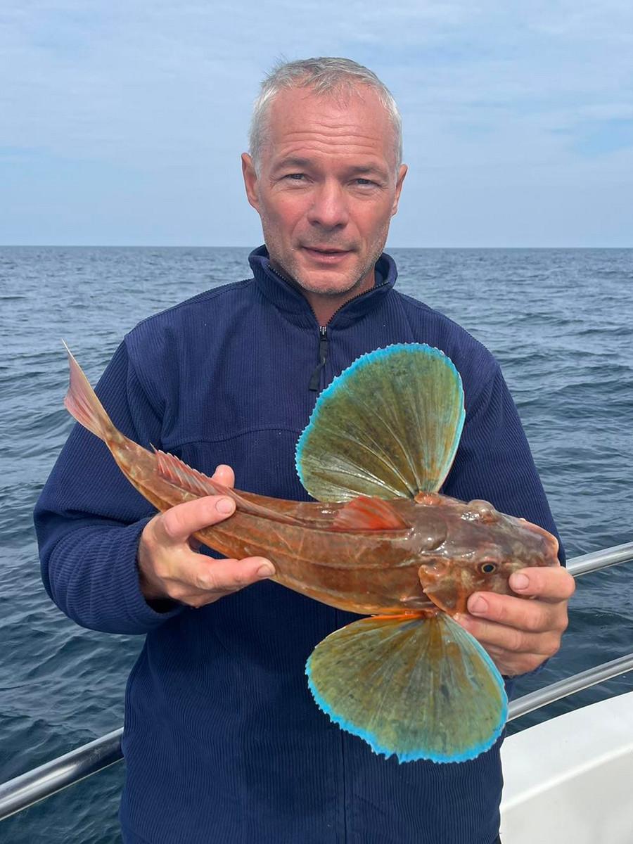 Near the headland, where the nutrient-rich estuary waters meet the Atlantic, mackerel are often abundant. These not only make excellent eating but also provide superb bait for the day ahead. Fine wrasse, sometimes reaching specimen size, can be found lurking around the rocks. It’s not unusual to catch more than twenty different species in a single day. As we move across varying seabeds—from rugged rocky outcrops with peaks rising and falling over 20 meters to flatter sandy and gravel banks—you’ll encounter a wide range of species. These include pollock, coalfish, ling, cod, haddock, whiting, gurnard, conger eels, and large spurdog, while rarer catches like anglerfish, megrim, hake, and stone bass are also possible.