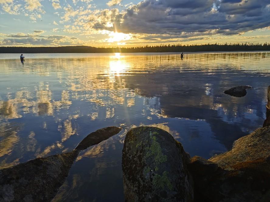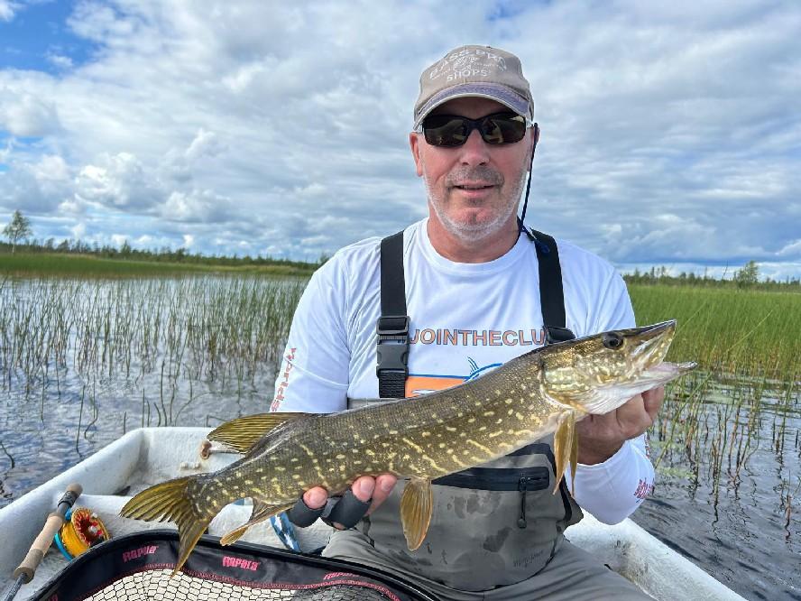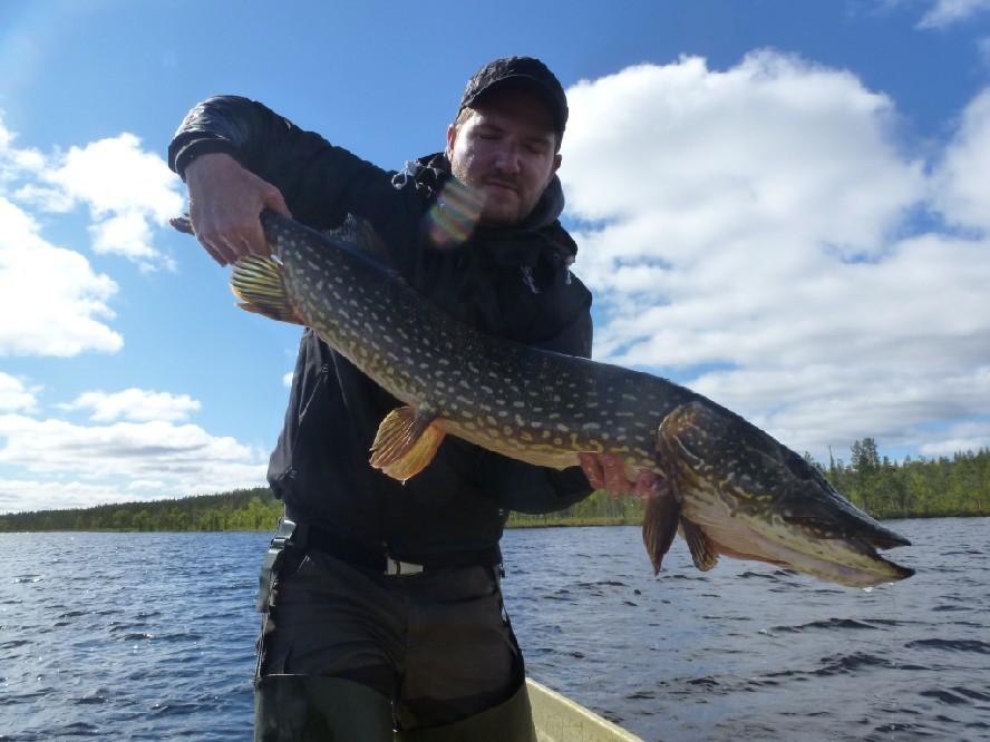 Imagine you are overlooking the clear river stream where insects are abundant above the water, and the graylings rise up to have them as lunch . Or imagine one o f the many remote lakes, in the middle of the endless Taiga forest, and the fierce strike to your lure or streamer from the pike that is raging at the end of your line. Or how about the midnight-sun that will not go down over the never ending rapids of the mighty River Muonio, and your fly is drifting down the pool waiting for that hungry salmon to come along and make your day perfect! It just does not get any better than this!