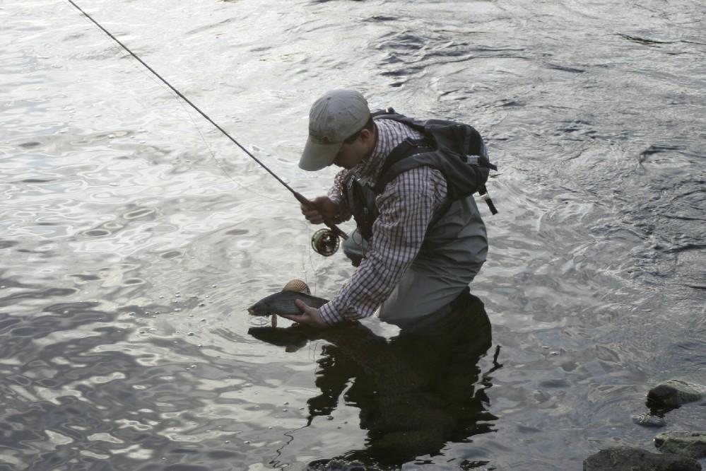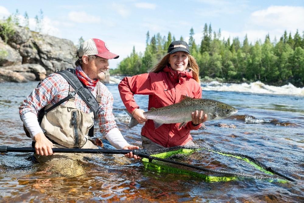 In all you catch salmon, grayling, pike and perch. You decide what you want to fish for. And you can do that by fly or by lure. There are some simple rules for fishing in this beautiful and fish filled river system.