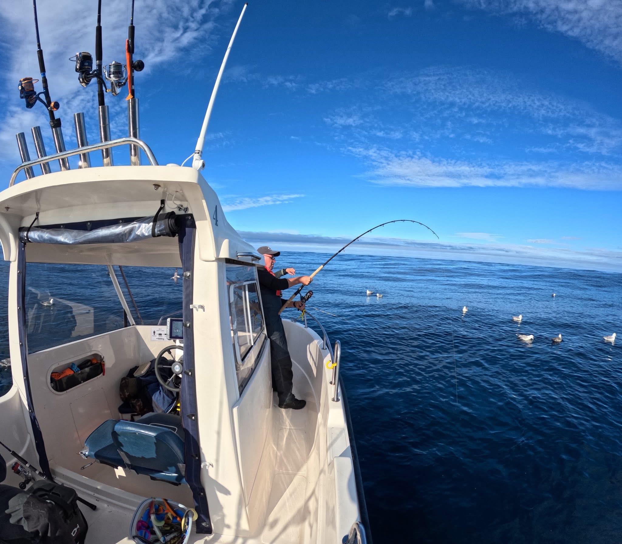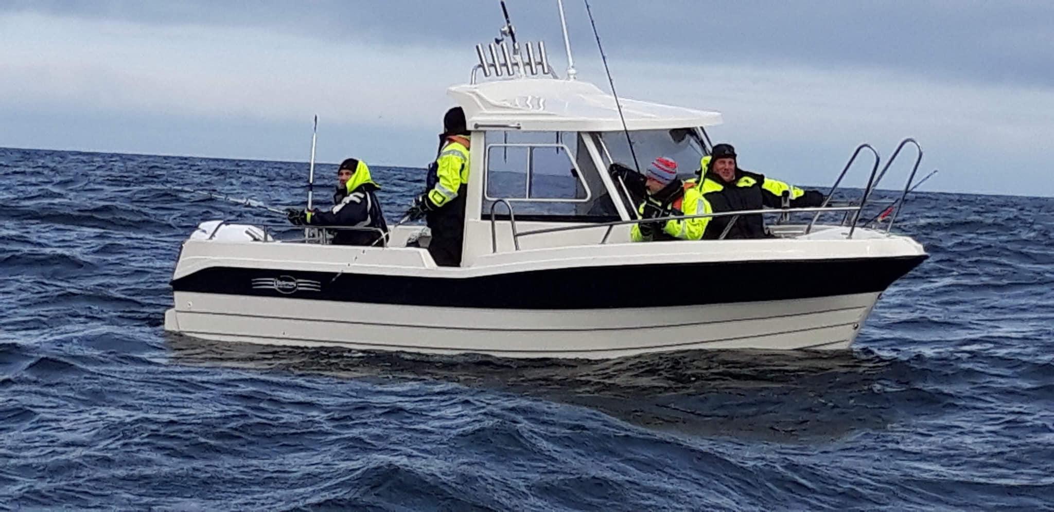 The boats used here are the 23 feet (7.5 meters) long Dolmoy cabin boat type walkaround available with 80 to 115 HP Selva engines. Of course the GPS plotter and fishfinder are standard on the boats. They offer space for up to 6 people with 4 to 5 people comfortable fishing. Because of the cabin and the walk-around option, this is a perfect fishing boat that brings you quickly and comfortably to the fishing grounds.