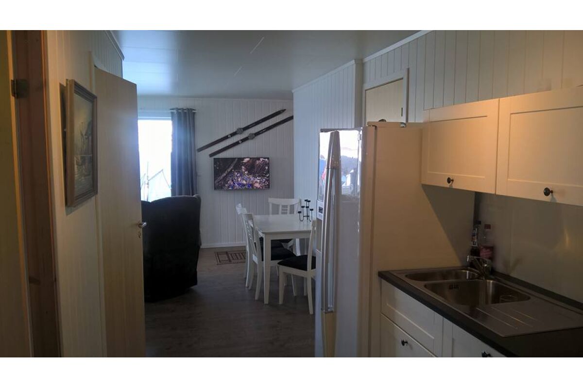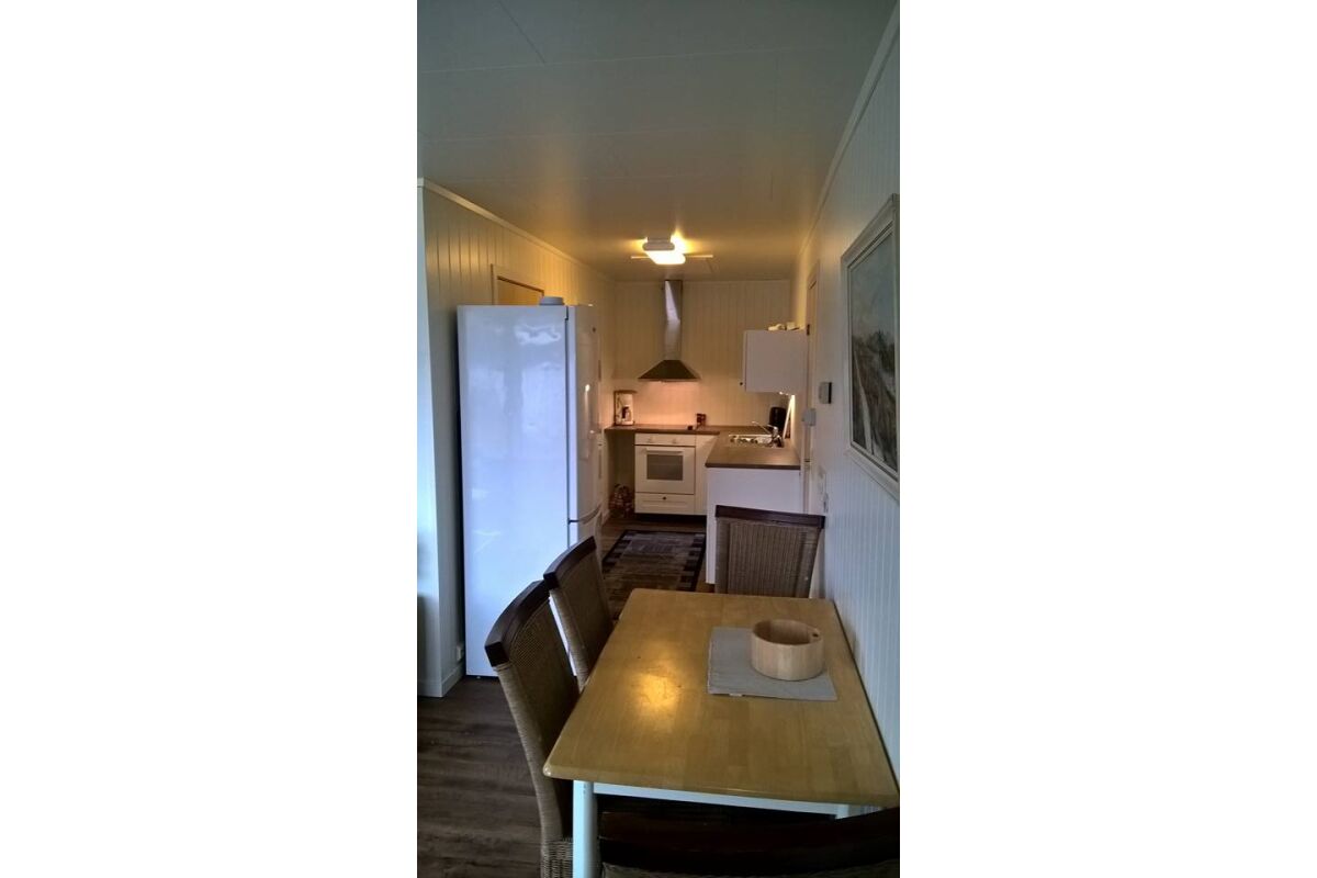 This house has everything we fishermen need. It is 120 m2 and in total there are 4 bedrooms with 10 single beds. The kitchen is fully equipped with microwave, kettle, oven, 4 burner stove, dishwasher, refrigerator and freezer. There is also a terrace of 20 m2 which overlooks the fjord and where a BBQ is included in the garden furniture. It is neat but somewhat dated. But with your eyes closed you won't notice much of it.