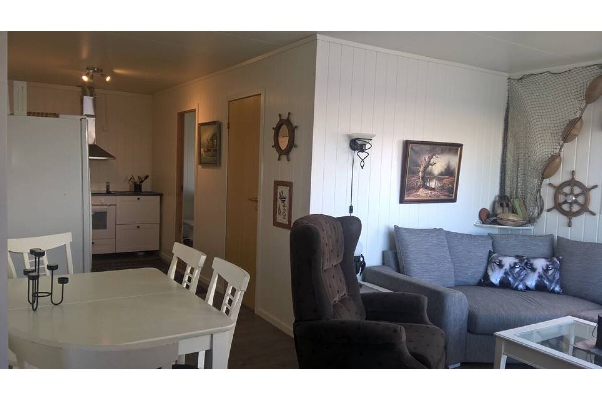 This house has been completely renovated and looks like new. It is 60 m2 where the kitchen is fully equipped with all comforts such as oven, four burner stove, coffee maker, kettle, dishwasher, microwave, refrigerator and freezer. In addition, this house has its own sauna and from the living room you have a view over the fjord. How luxurious would you like it to be? There are a total of three bedrooms, two with a single bed and one with two single beds.