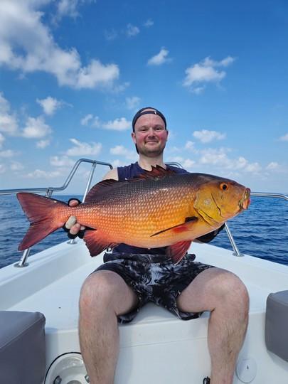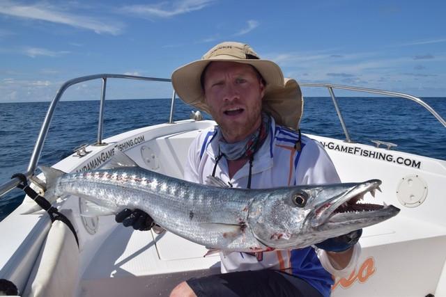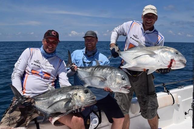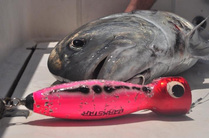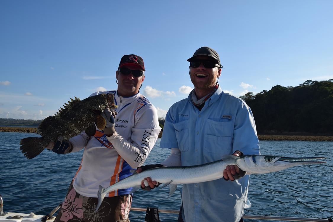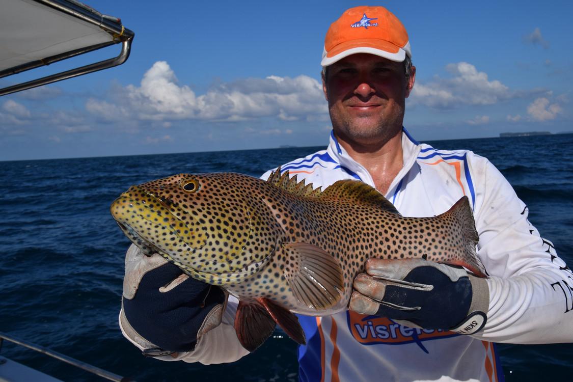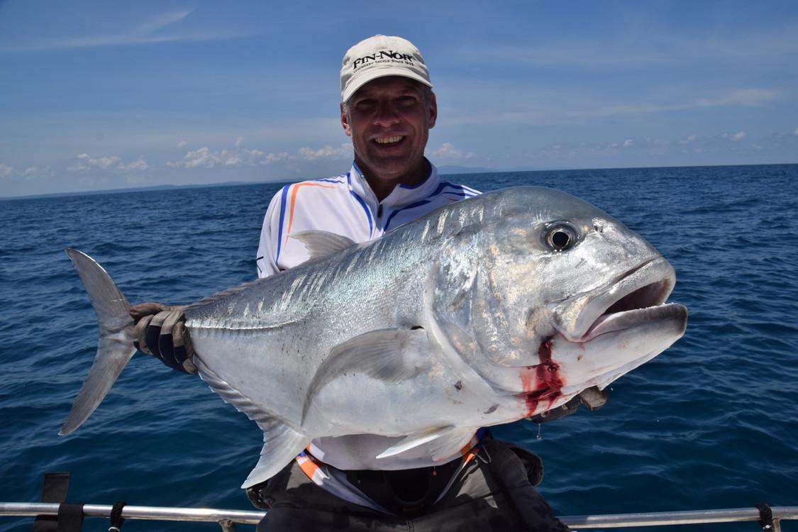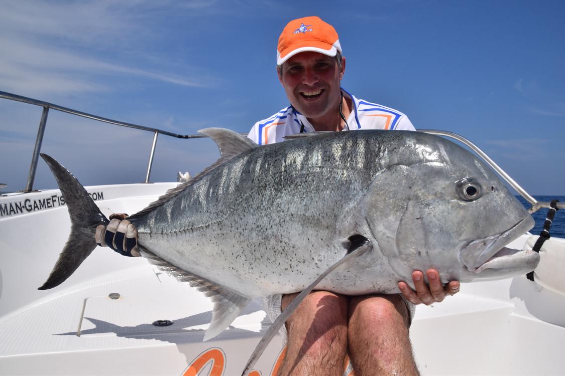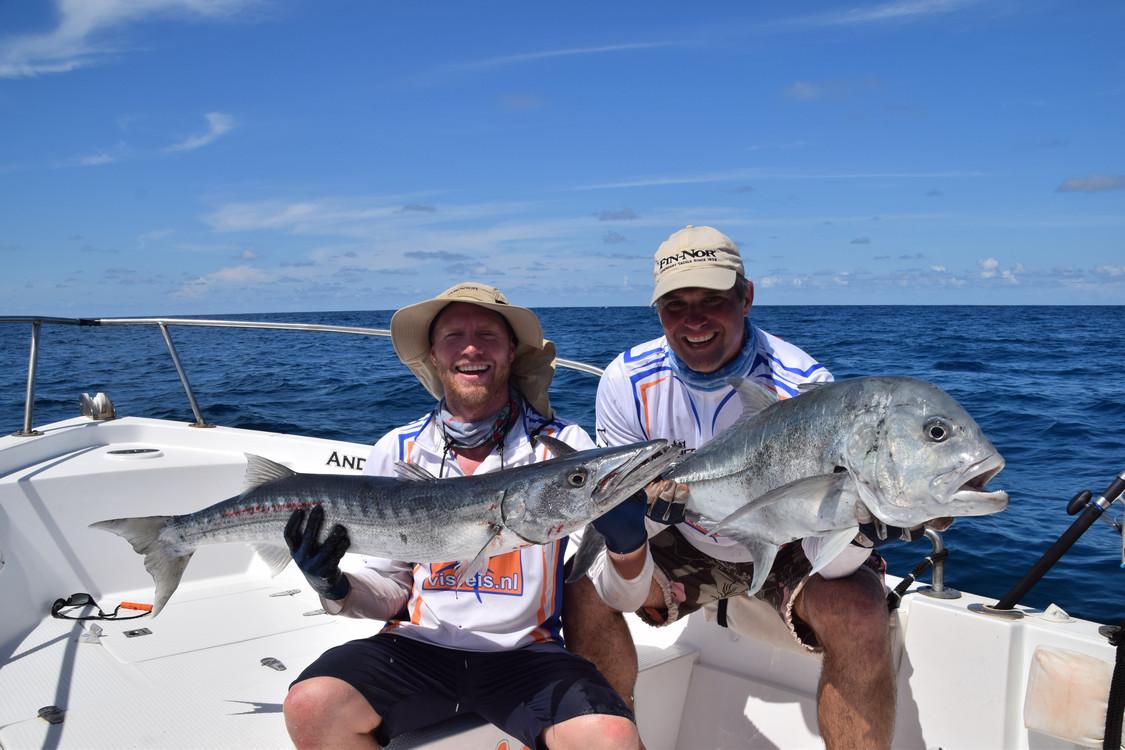 GTs, dogtooth tuna, wahoo, barracuda, marlin, tuna, dorado, groupers...... All big fish that reach up to 30, 40 and sometimes even 50 pounds and in extreme cases even in kilos. Between fishing spots you can troll for yellowfin tuna, barracuda, wahoo if you want to relax a little. For trolling, all materials can be supplied. After a day of popping and or jigging, a moment of rest for the back is also quite nice. Until you get another hookup, of course! Then you will have to get back to work.