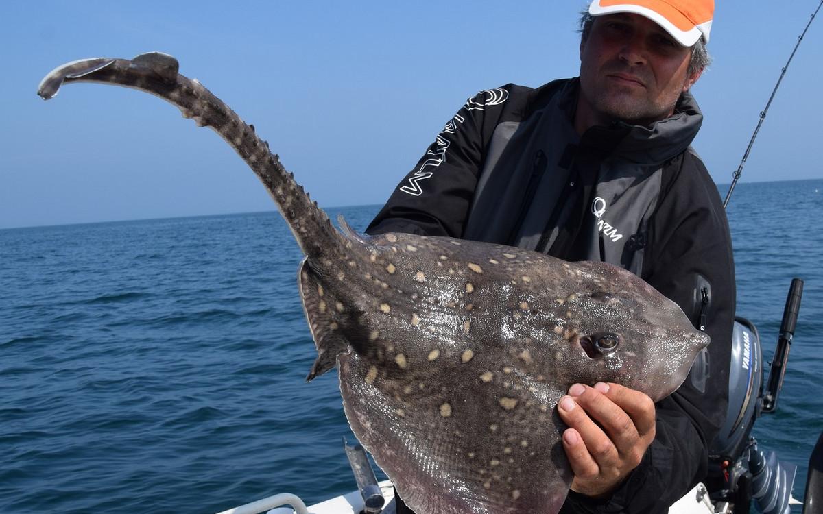 You can catch a lot of different species here. More than 50 species have been caught here and the record of the boat in one day is no less than 27 different ones. From the beach or coast these are plaice, dab, sea bass, sole, mackerel, small sharks and flounder but also from the boat whiting, mackerel, pollack, cod, coalfish, ling, wrasse, bull huss, rays, tope, blue shark, catfish, spurdog, red and grey gurnard, conger and also skate. This ray is caught a lot here and reaches royal proportions. Targeted skate fishing for large specimens is mainly done in the spring and autumn from the more northerly Crinan.