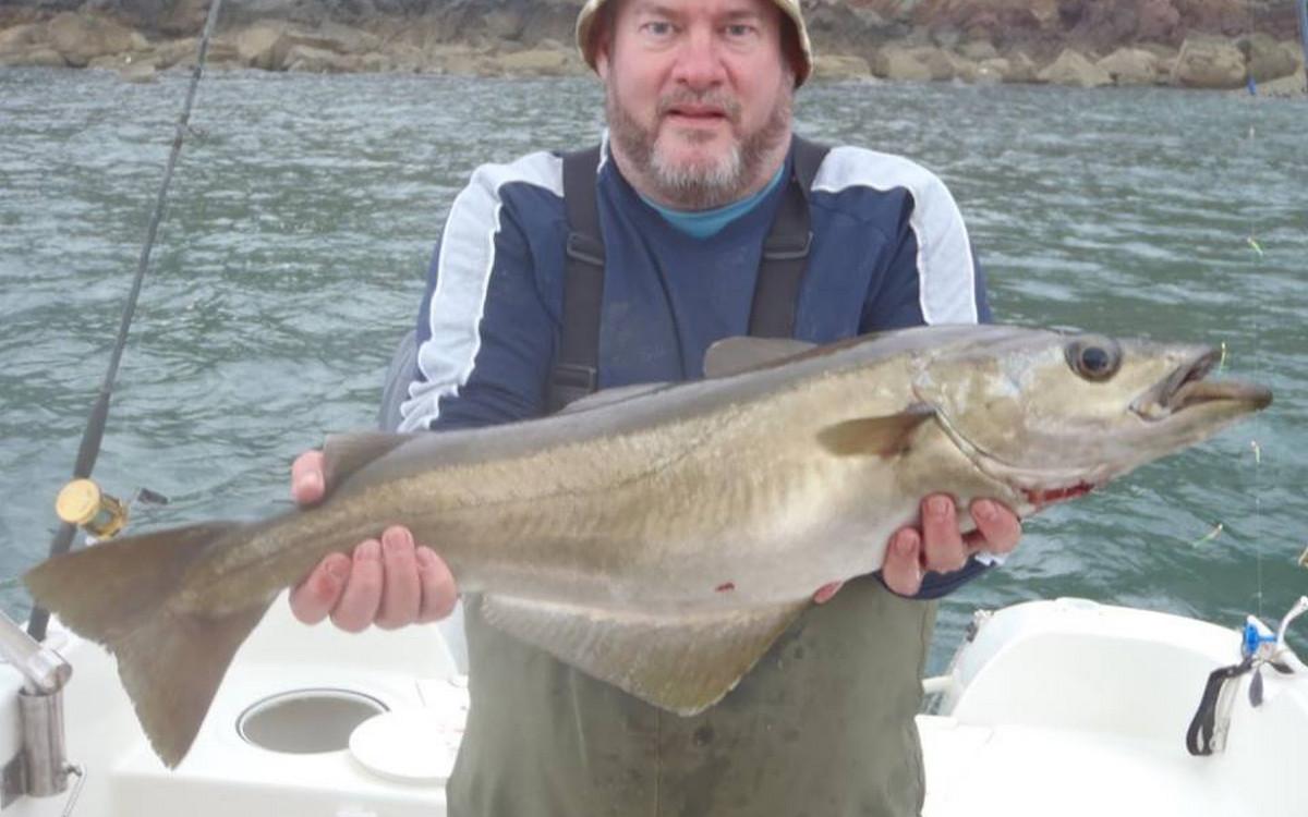 Fishing for pollack takes place only a few meters from the cliffs, so you can fish here (almost) always sheltered and practically no days fall out. A typical day starts with catching mackerel in order to have enough bait on board. Then we switch to the shrimp paternoster to catch fresh sand eel. This is used as live bait for the pollak. The choice is now yours to go fishing for pollack with a float or by free-lining. An average day on the boat brings forth about 100 + pollack so it continues to work with average specimens between 2.5 and 5 kilos and peaks to 8 to 9 kilos. these fish give you a fantastic fight and are for nothing inferior to fellow pollack. The joy is further increased by using a bass rod that provides even more action. Saithe, conger and wrasse are also caught at the same locations. Of course the conger is fished with a heavier set up where at 20-30 lbs is advisable.