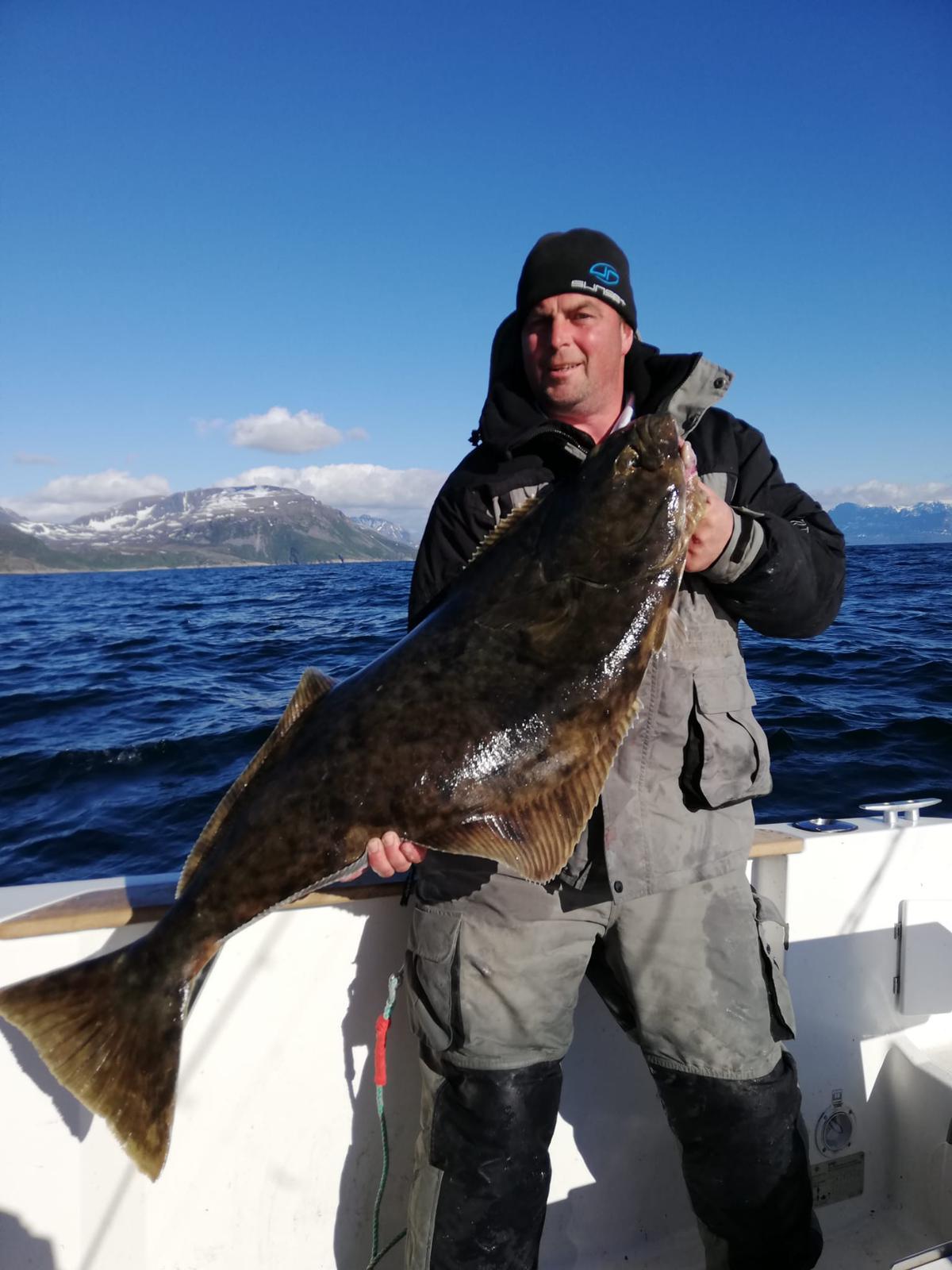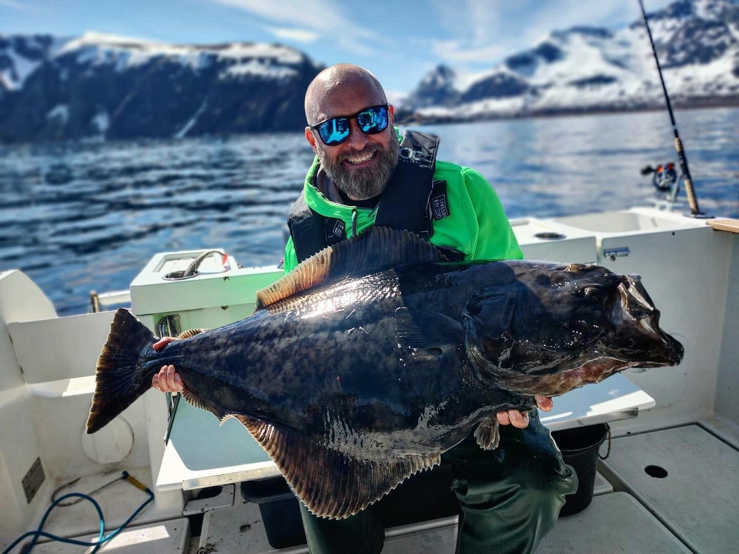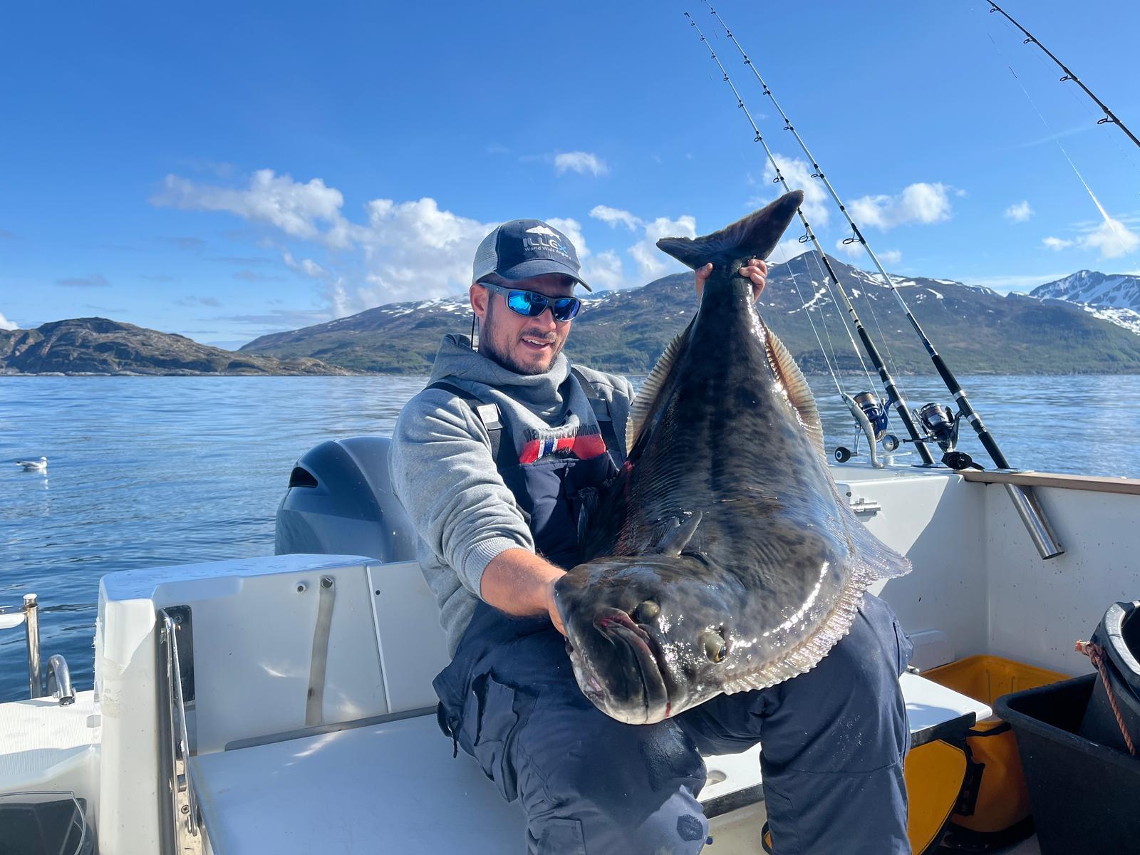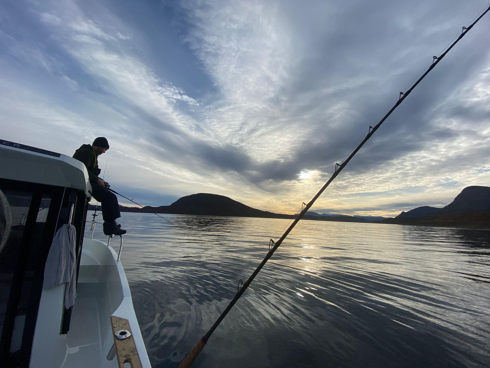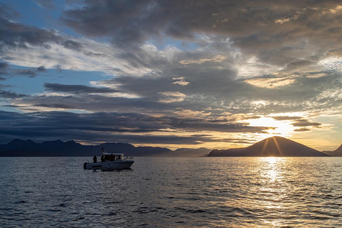 The local bank and supermarket are 1.5 kilometres away and the camp is embedded in an impressive natural environment. Add to that the midnight sun, possibly northern lights later in the season, snow-capped mountain peaks, sea eagles and dolphins and sometimes even whales that appear around your boat. And then a big halibut on the line and the picture is complete!