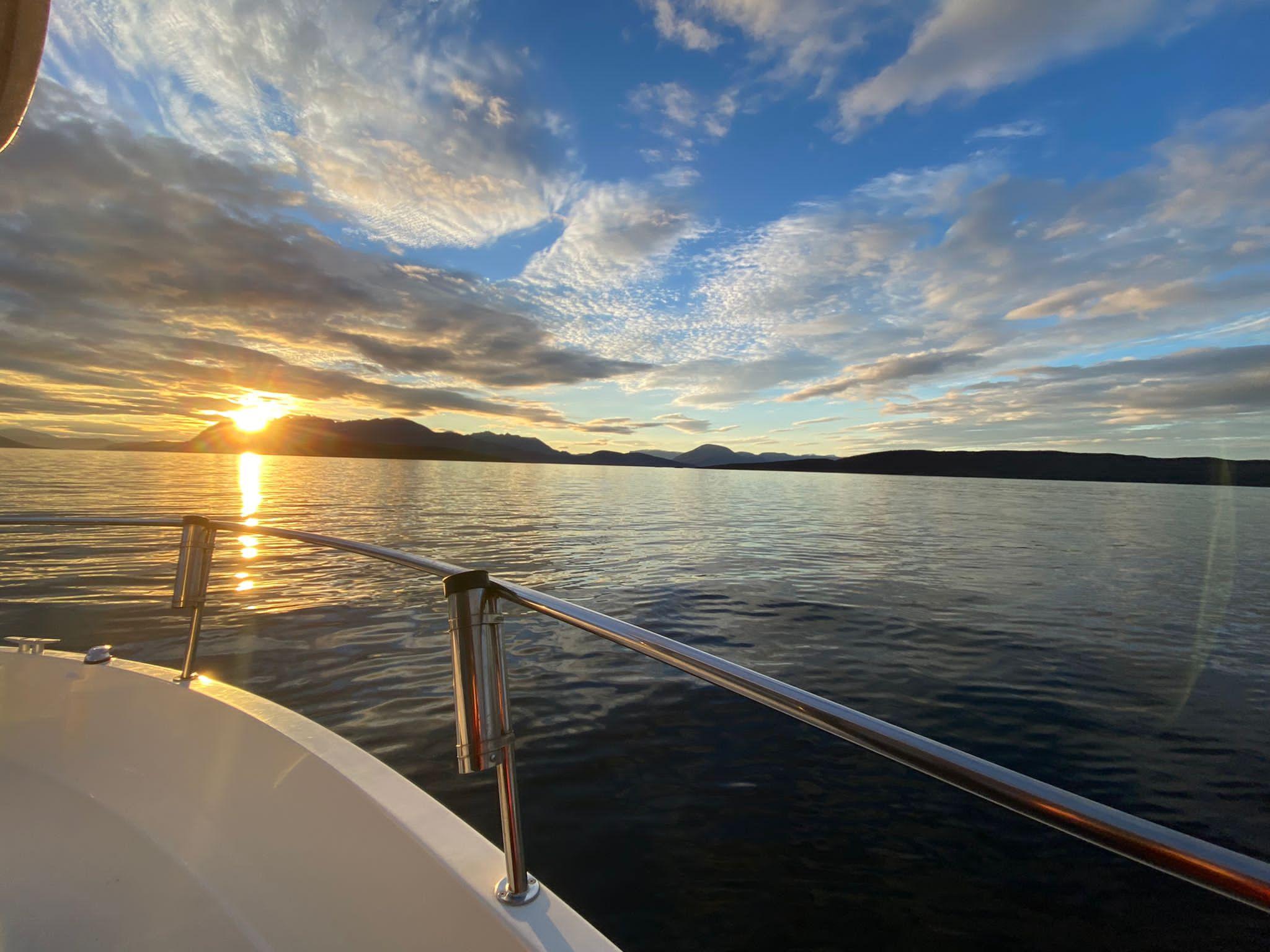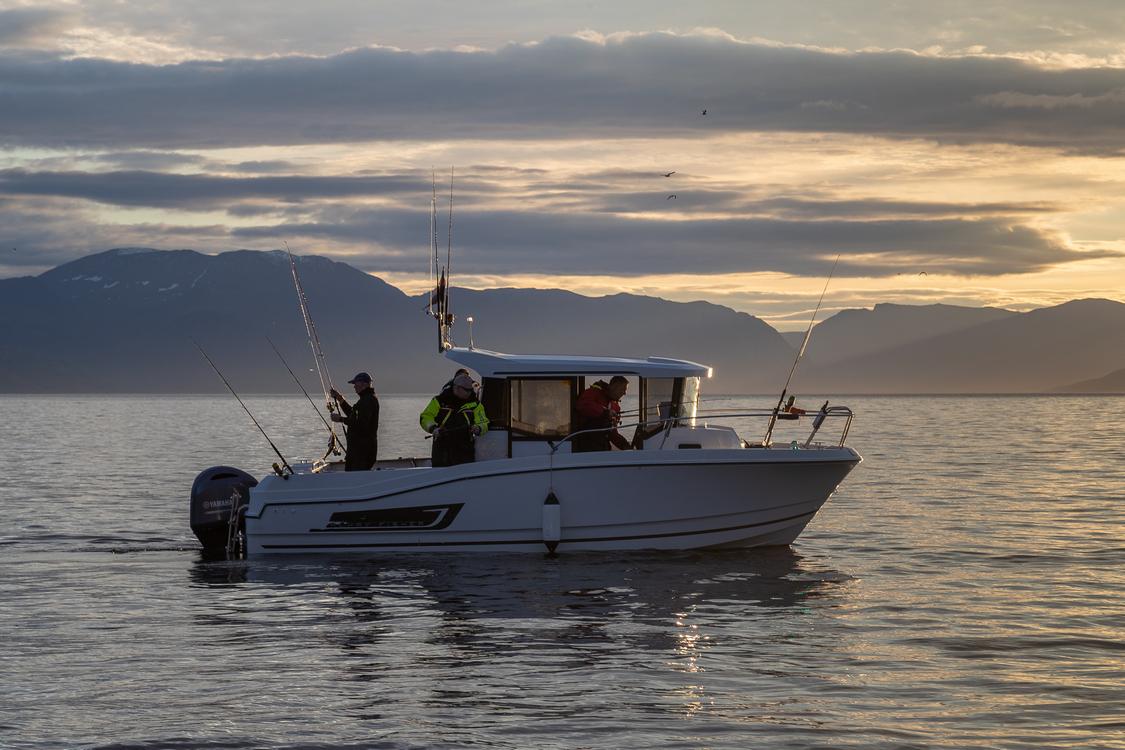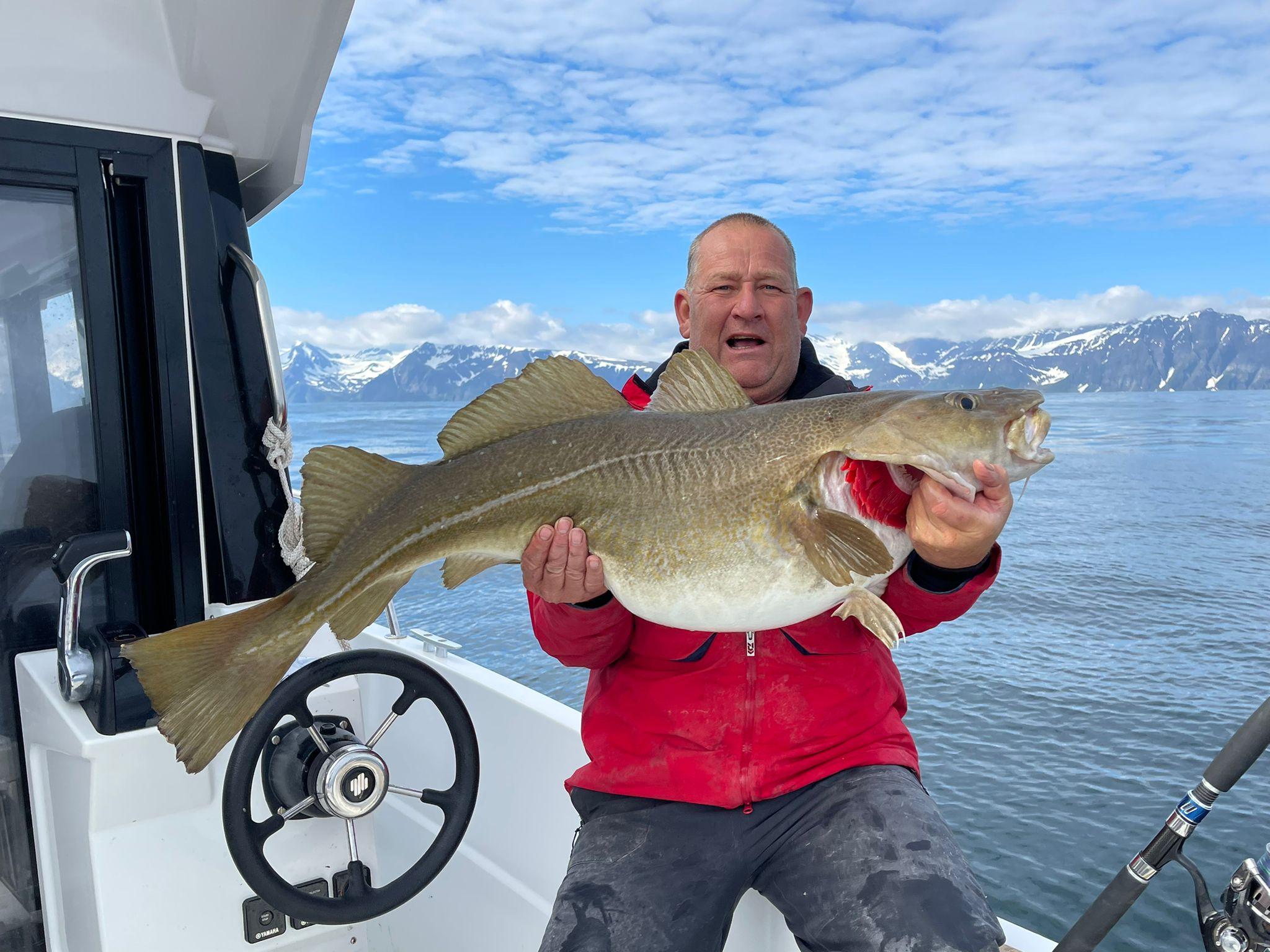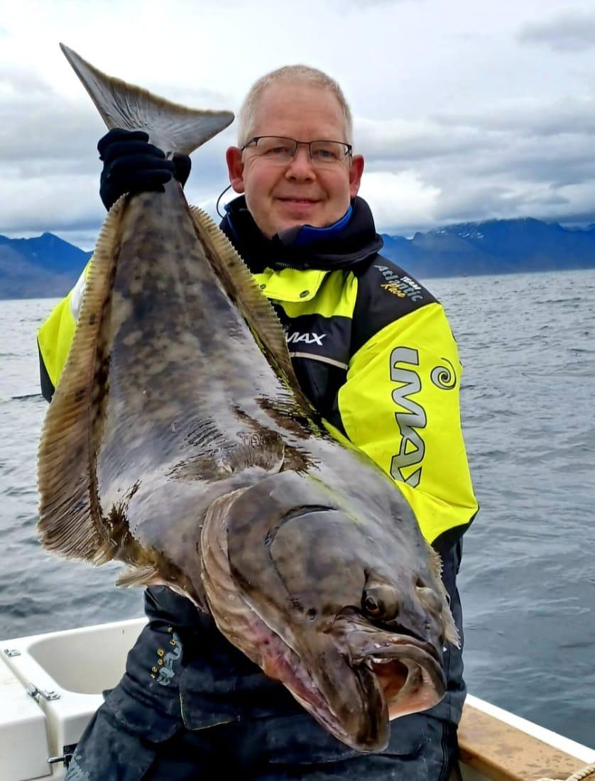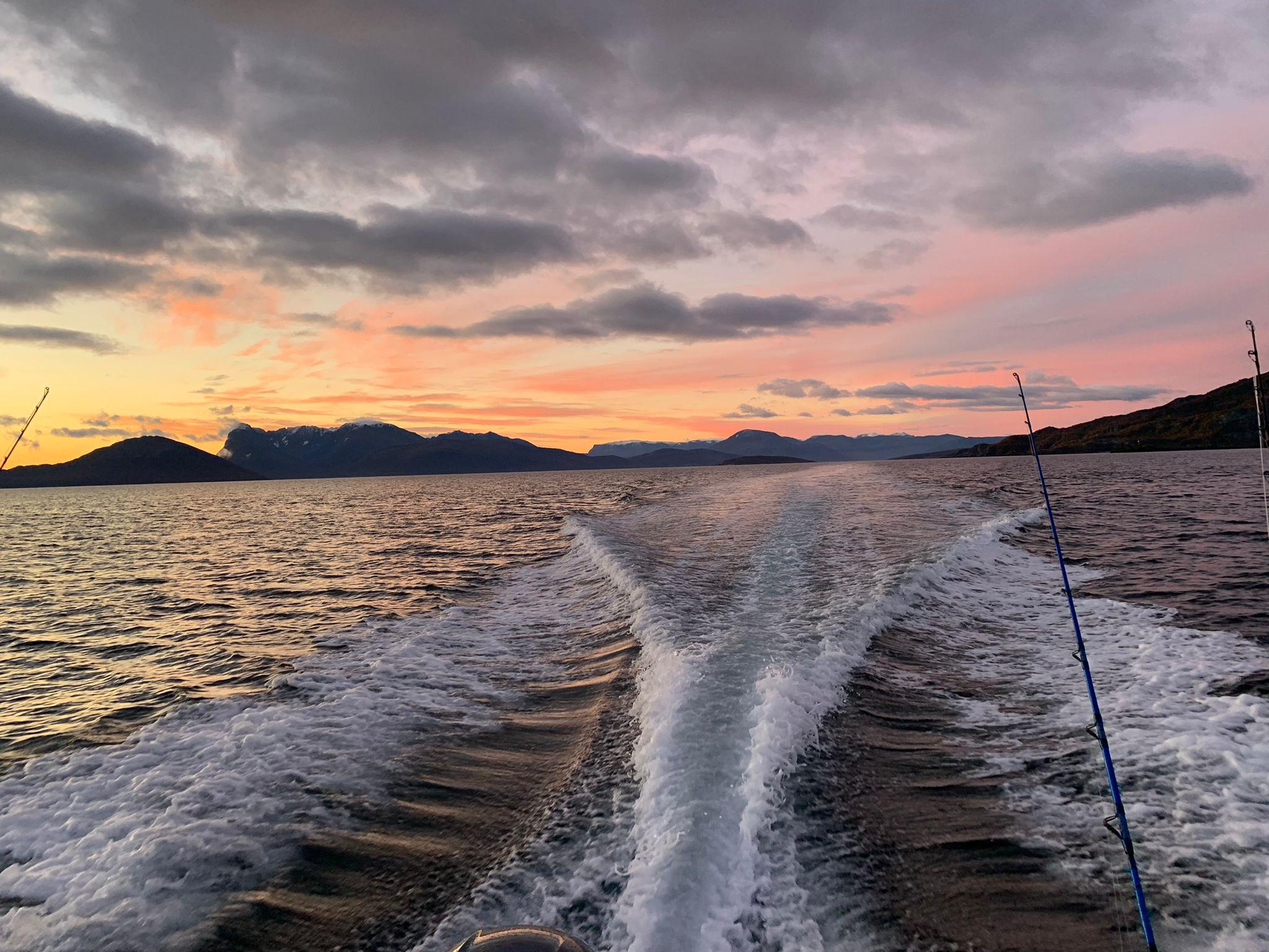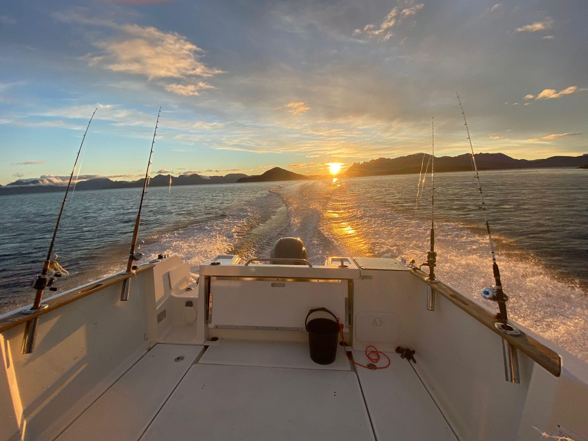 The local bank and supermarket are 1.5 kilometres away and the camp is embedded in an impressive natural environment. Add to that the midnight sun, possibly northern lights later in the season, snow-capped mountain peaks, sea eagles and dolphins and sometimes even whales that appear around your boat. And then a big halibut on the line and the picture is complete!