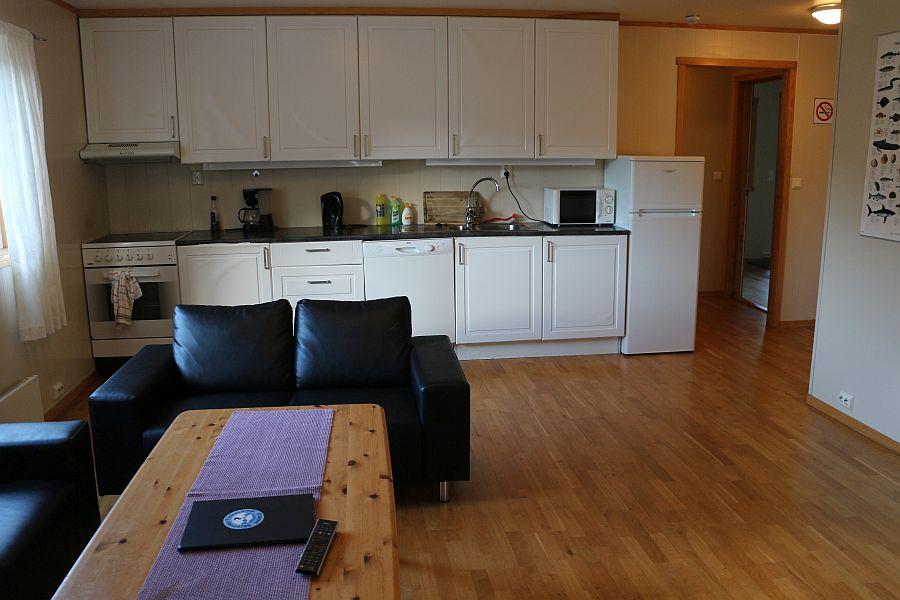 An important factor for this is the sheltered situation of this location so that we have relatively few lost days due to the weather. This also makes it a perfect location for skrei fishing, which is optimal in March and April. But of course also for the halibut if you consider the end of the season from August to October. In total this location has 5 houses and 8 apartments close to the village of Skjervoy with approximately 2000 inhabitants. The island is connected to the mainland by a bridge so you are not dependent on a ferry and can arrive or depart at any time you want.