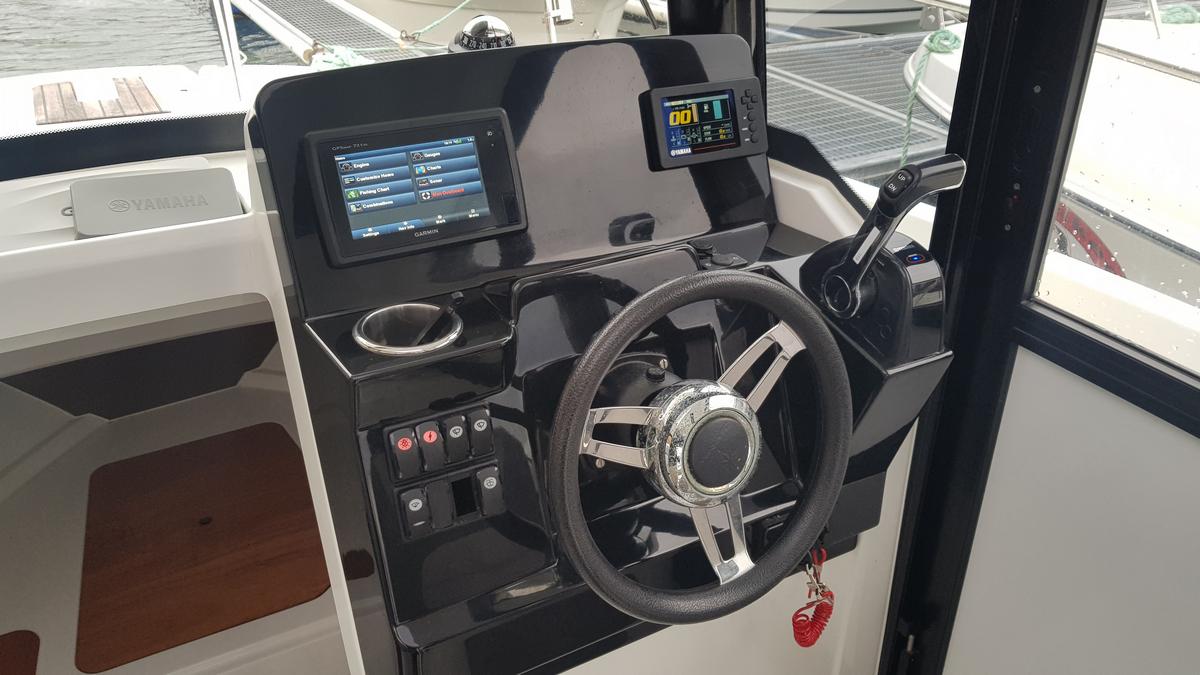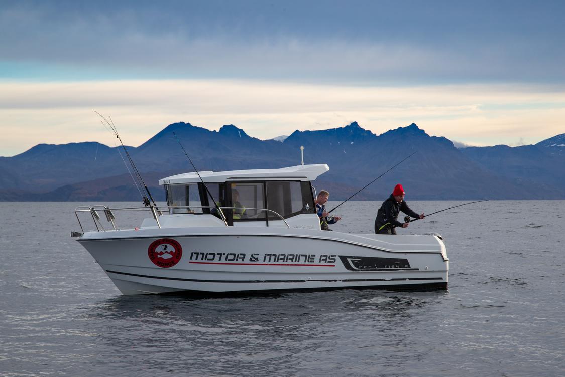 The 24 (!) feet (7.3 meters) Jeanneau Marlin boats are mounted with a 150 HP Yamaha engine with cabin in the middle and walkaround, GPS and fishfinder.