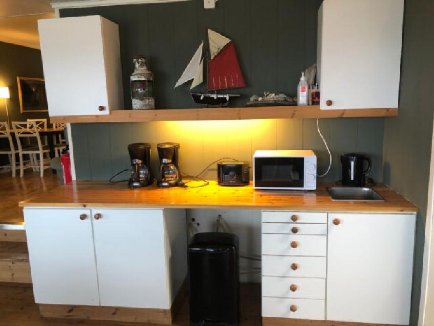 The house is right next to the main house and is 85 m2 and has a fantastic view. It is about 50 meters from the sea and about 40 meters from the filleting area. The house has plenty of space, a large terrace which is partially covered with glass and four bedrooms with 2 single beds each and there are 2 toilets. The house is rented out with 2 boats.