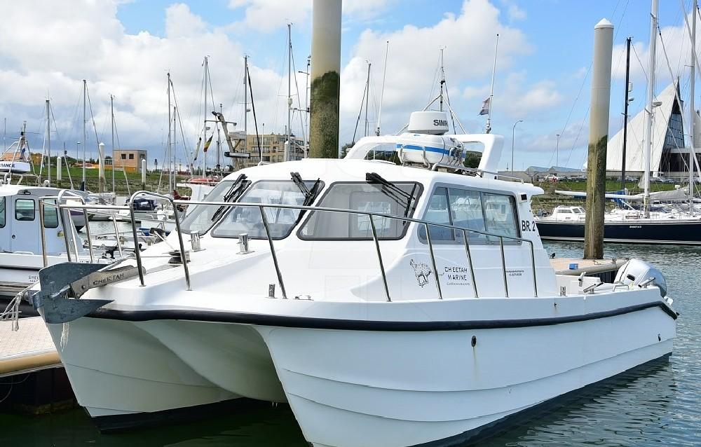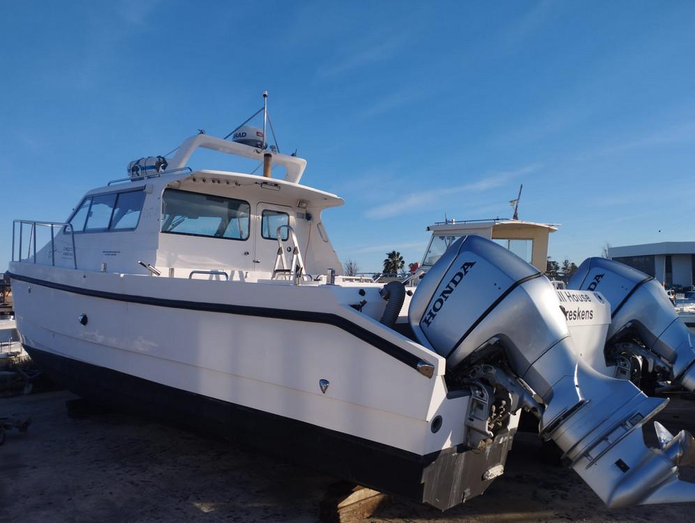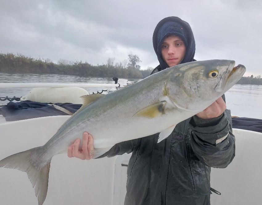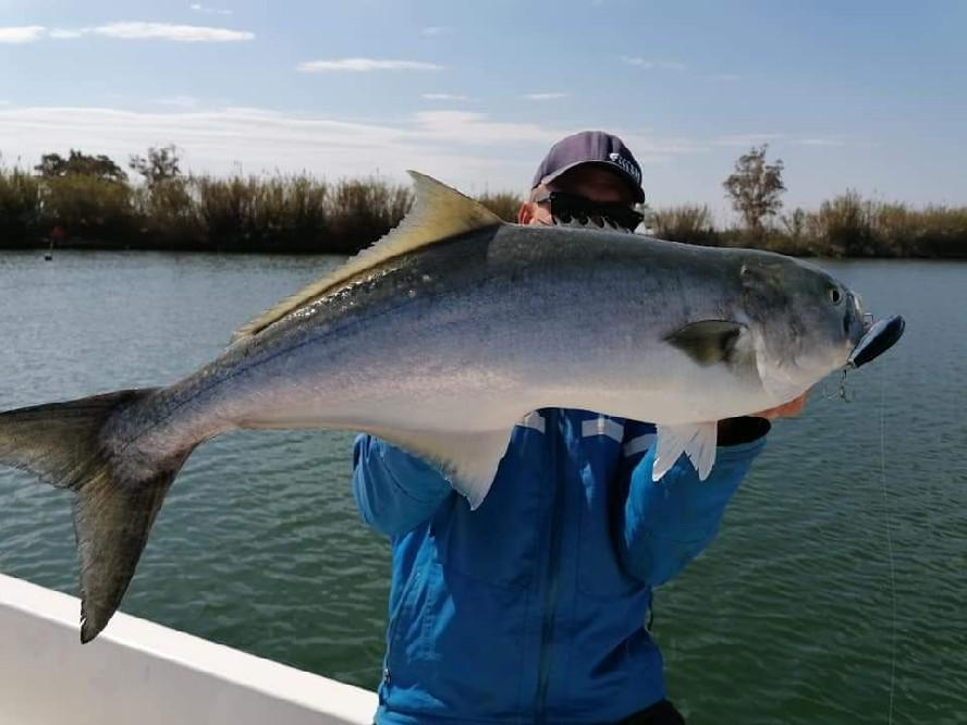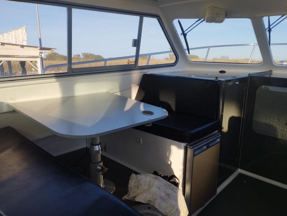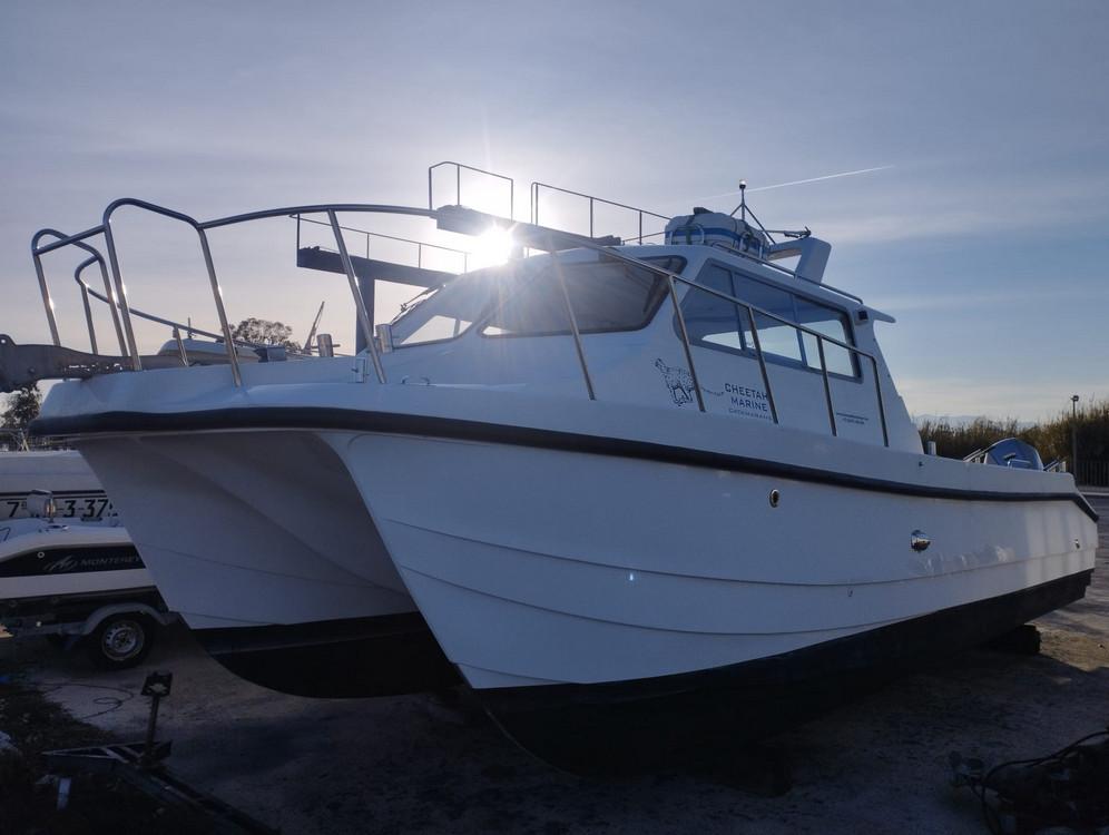 After years of guiding in the Ebro Delta, we have found the best boat, perfectly suited to the local conditions. We have fitted this fast and very stable Cheetah catamaran (9.7 x 3.7 m) with two 250 hp Honda engines. It is equipped with a Simrad 16” & 7” display, radar and autopilot, and has a spacious cockpit for comfortable fishing. The boat is very stable and safe. The advantage is that we can still set out even in windier conditions! Inside, there is seating for 5 people.