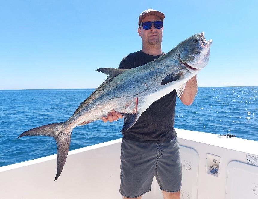 June We fish for Leerfish, Sea Bass and Bluefish with slow trolled live baits and casting lures. The tuna is spawning so we leave them alone during this month.