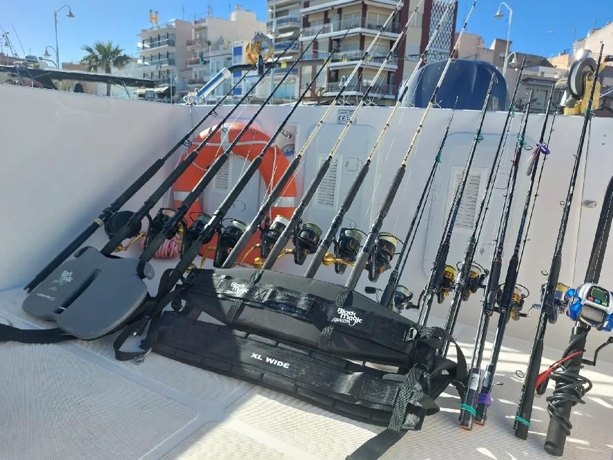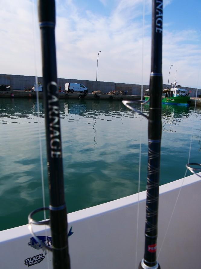 Next to that there are two electronic reels to quickly catch live bait and fish for chumming at depth. And finally we have Sa quiver (feeder)sets for anchored fishing for sea bass. As you can see; for all kind of fishing there is a perfect set up. And in terms of lures, there is also a wide assortment here available.