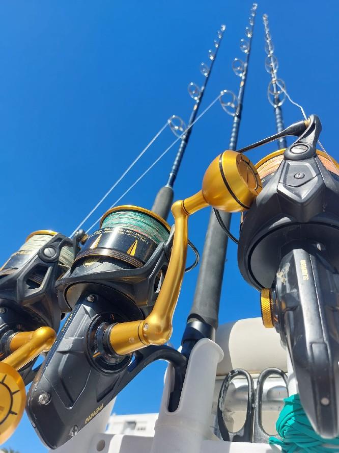For casting we use the Penn Battalion 50 lbs spin rods in combination with the Slammer 8500. For the lighter tackle targeting bluefish, Garrick, se a bass etc we supply Slammer and Conflict reels from 2500 till 8000 with spinning rods from 30 to 100 gram.