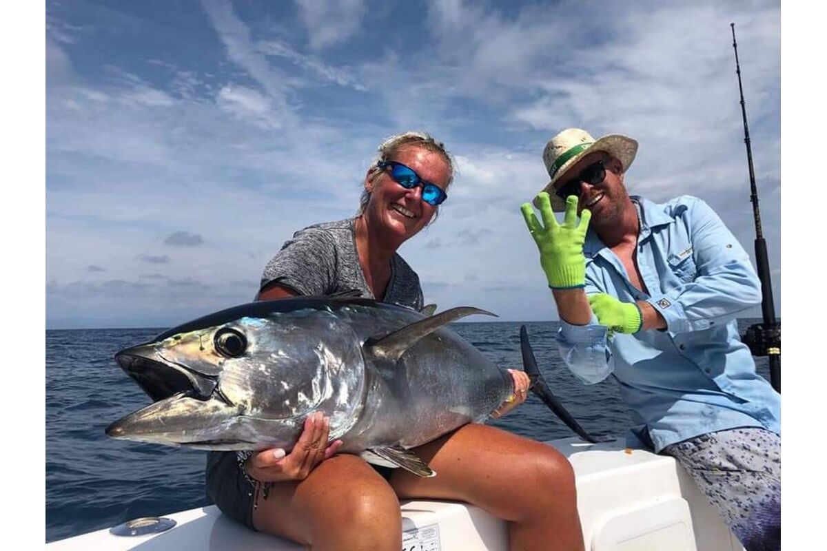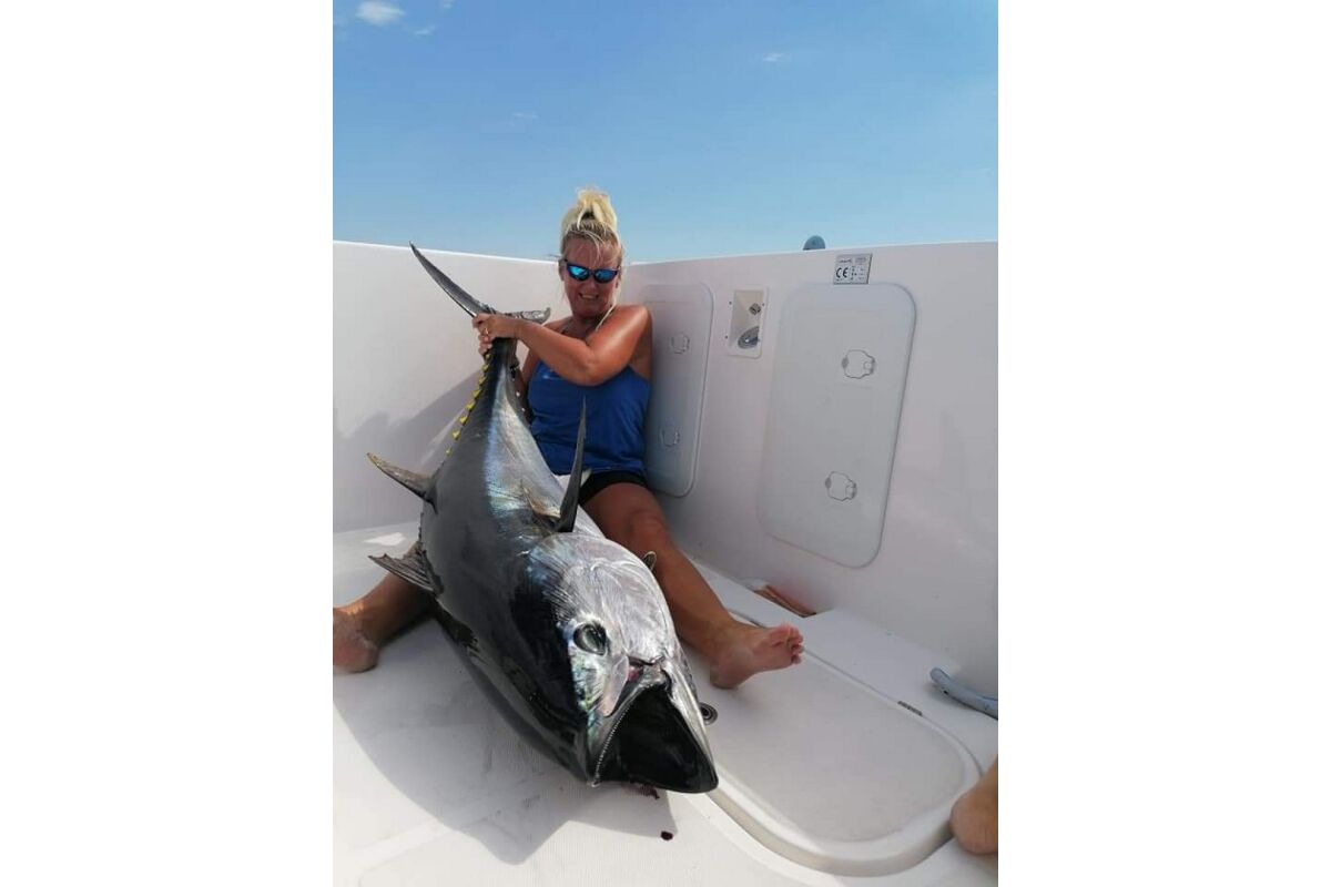 After years of guiding in the Ebro Delta, we have found the best boat that has everything for the local conditions. Extremely spacious, completely open, no rod-breaking T-top, a catamaran for greater stability with a cabin that provides shade. A high-quality Sardamatic chumming device, specially designed tuna-proof rod holders, downriggers and numerous other features. And all this is powered by two reliable Honda 200 HP outboard motors. The boat comfortably seats four anglers. Next to the fishing lunches in the form of sandwiches or bread rolls are included. Water and soft drinks are provided based on normal usage. In case you like more or specific drinks you can bring it yourselves and have them cooled on board.