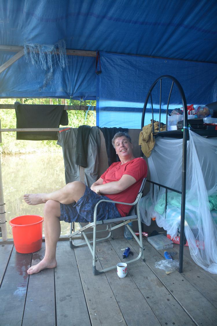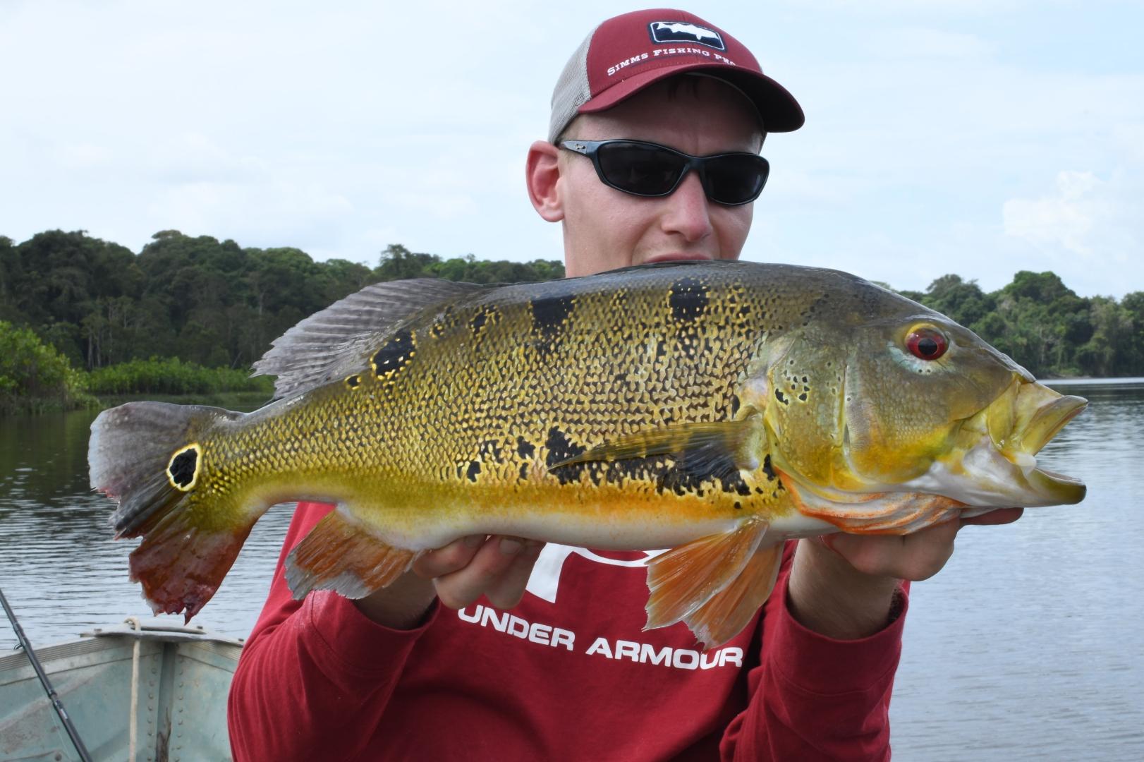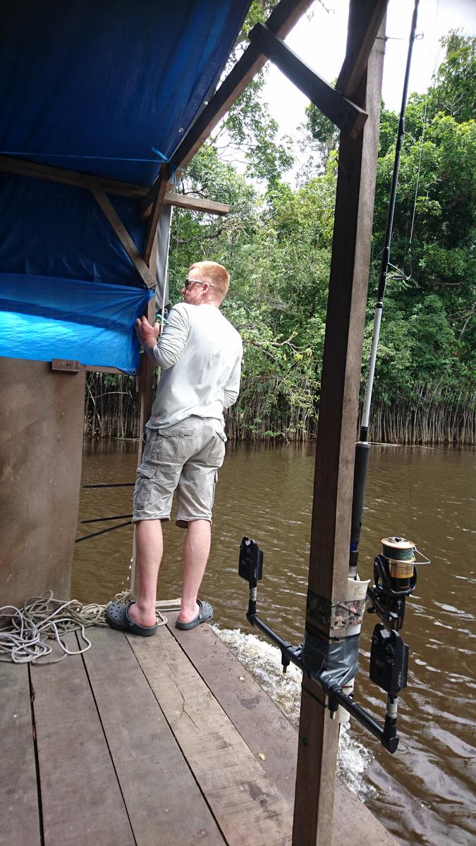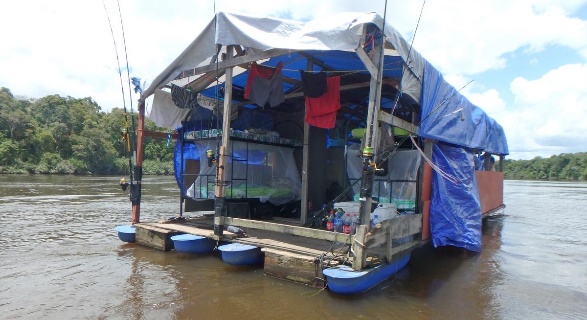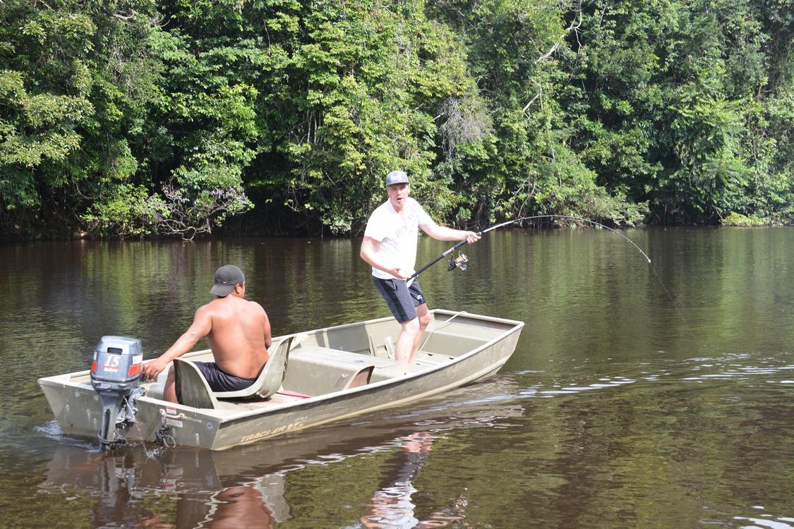 the main species here is the big lau lau and also tarpon, catfish, piranha and peacock bass. This trip takes 7 days and you will stay on one or more two to four person house boats. Per 2 anglers there is a 15 foot fishing boat with 15 HP engine and guide. And there is a cook to take care of all meals.